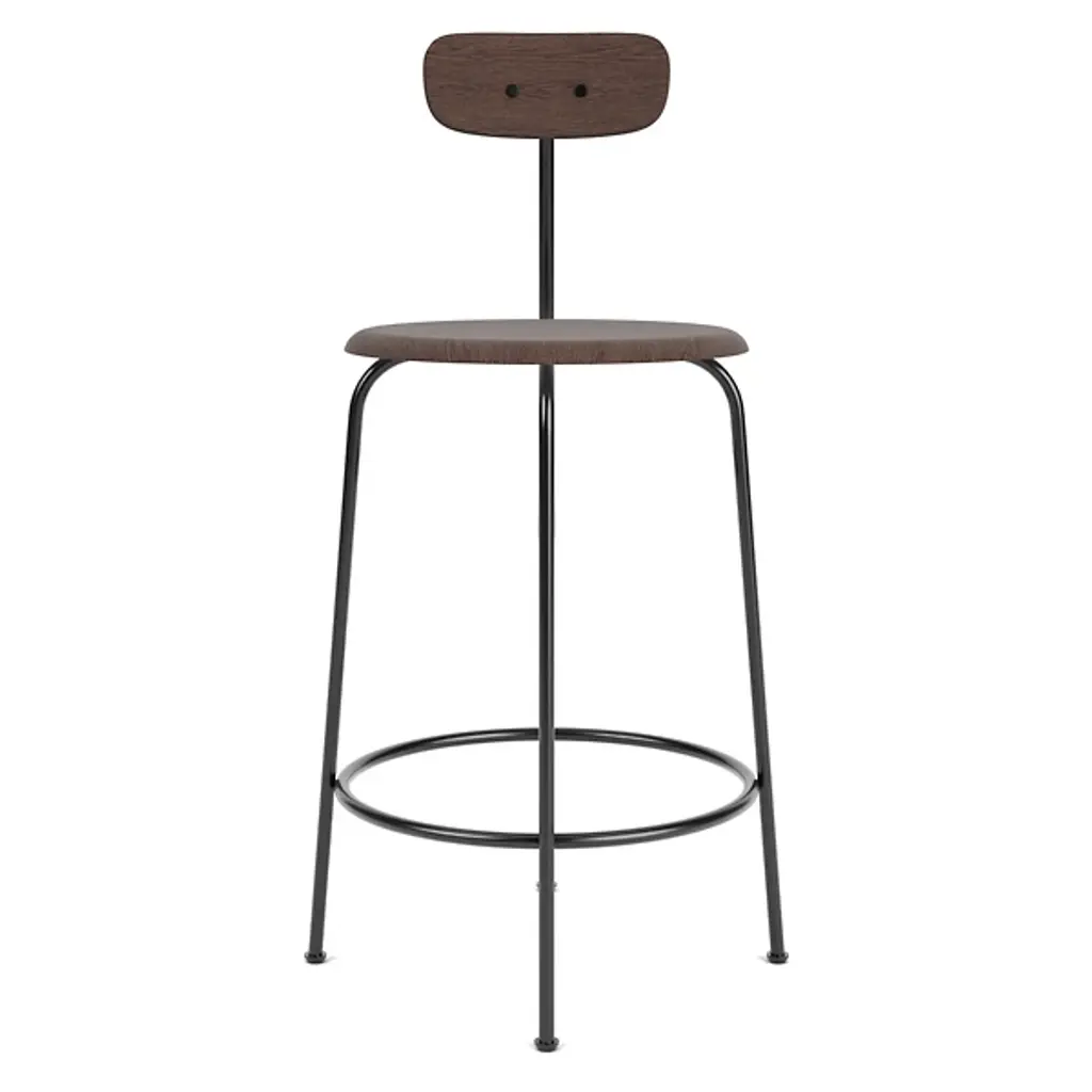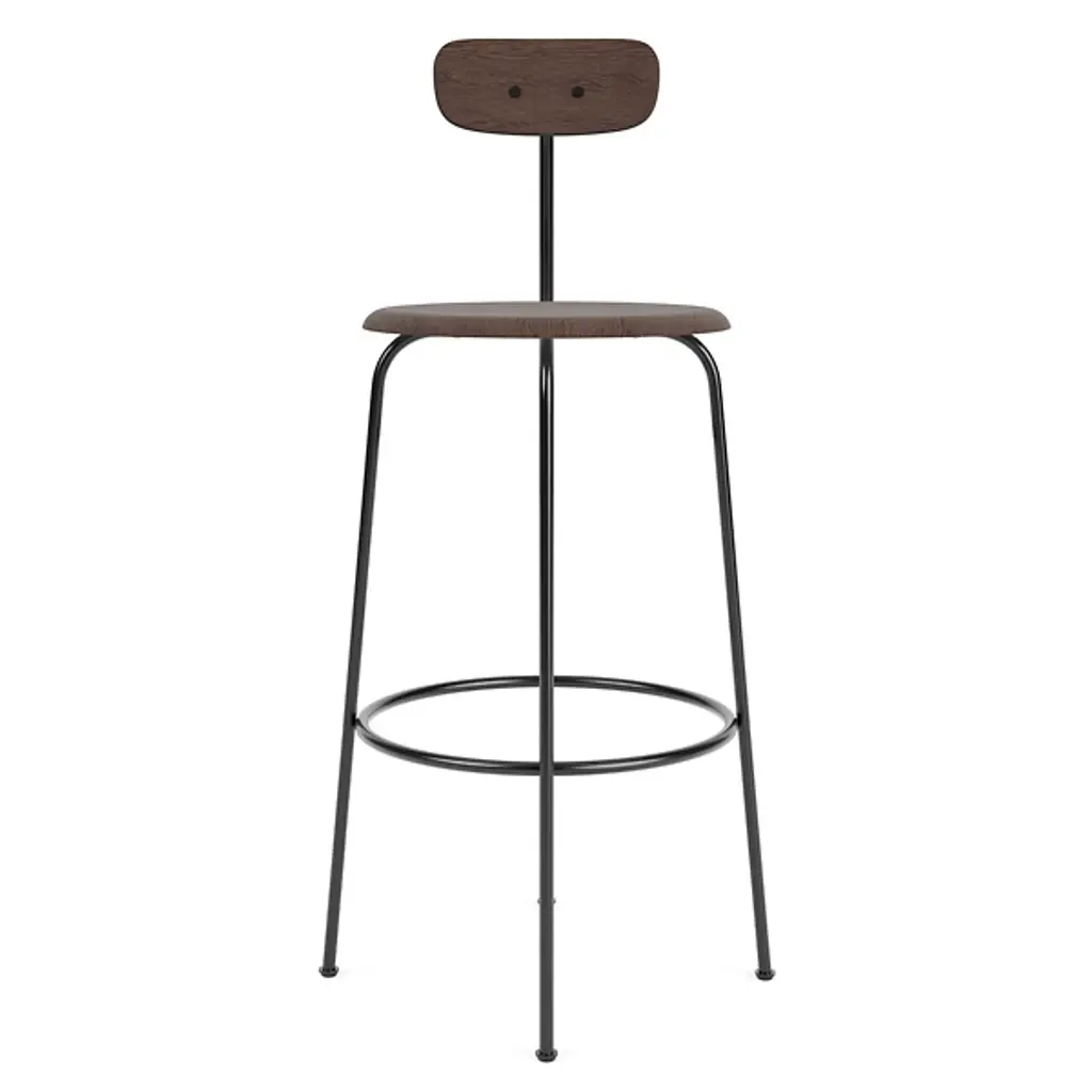 The Afteroom Bar / Counter Chair from Audo Copenhagen is designed by Afteroom . It has a graceful, slender framework and is composed of powder-coated steel. The introduction of plywood and wood adds durability and a natural aesthetic. A rounded seat and seatback bring refinement to this Scandinavian and contemporarily styled piece. This BIFMA Certified compliant seating solution keeps you elevated and well-supported with its four-legged formation, exuding functionality, and a minimalistic touch.
