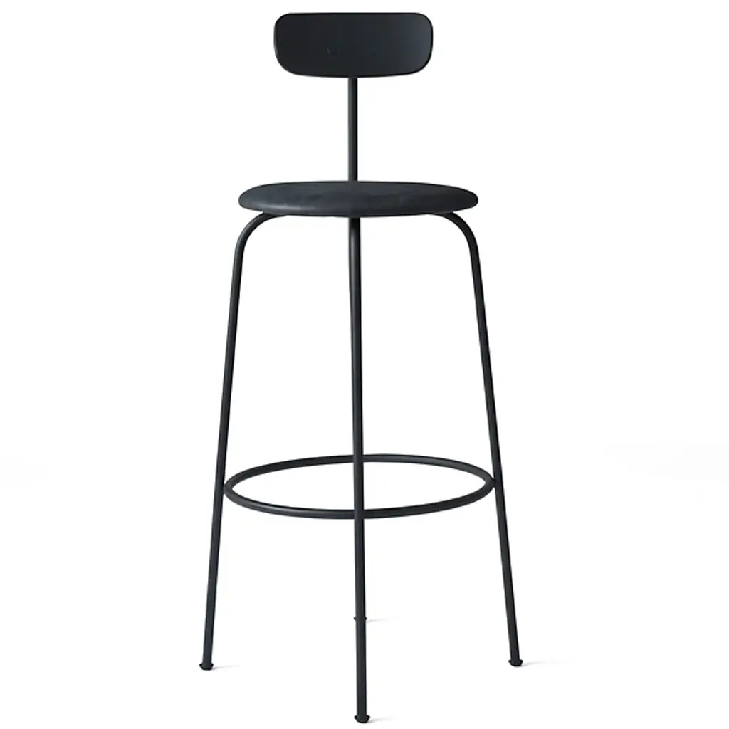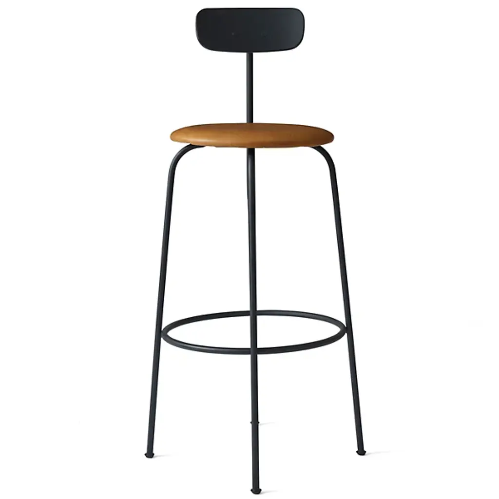 The Afteroom Bar / Counter Chair, Upholstered Seat from Audo Copenhagen is designed by Afteroom. It is made from MDF, plywood, and powder-coated steel. It has transitional style and is built for durability. Its upholstered seat is filled with foam for optimal comfort. This functionalist-inspired seating solution brings to mind Bauhaus stylistic influences. The framework forms a ring shape to keep the legs joined together. Afteroom keeps you properly elevated and balanced as you enjoy socializing among friends and family.