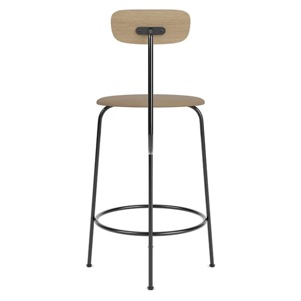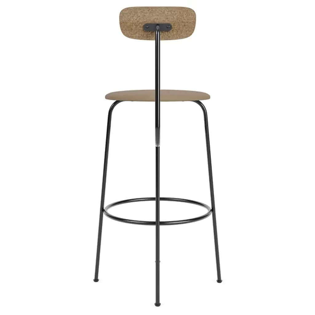 The Afteroom Bar / Counter Chair, Upholstered Seat from Audo Copenhagen is designed by Afteroom. It is made from MDF, plywood, and powder-coated steel. It has transitional style and is built for durability. Its upholstered seat is filled with foam for optimal comfort. This functionalist-inspired seating solution brings to mind Bauhaus stylistic influences. The framework forms a ring shape to keep the legs joined together. Afteroom keeps you properly elevated and balanced as you enjoy socializing among friends and family.