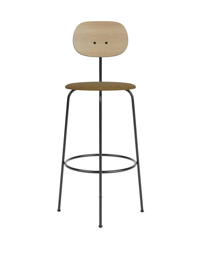 An homage to functionalism, the Afteroom Plus Bar & Counter Chair is a deconstructed design, stripped of unnecessary components to present a clean, minimalist aesthetic with high functional value. Its wide wood veneer backrest and generous upholstered seat ensure supreme sitting comfort, while the slender powder-coated metal frame is constructed for maximum stability with a foot ring that does double duty as a rest for feet. The result is a blissfully simple chair that embraces minimalism and clean lines without compromising on comfort.