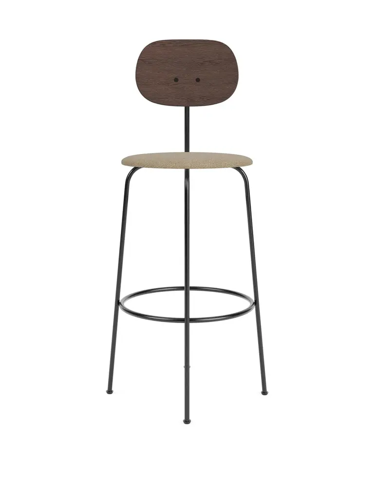 An homage to functionalism, the Afteroom Plus Bar & Counter Chair is a deconstructed design, stripped of unnecessary components to present a clean, minimalist aesthetic with high functional value. Its wide wood veneer backrest and generous upholstered seat ensure supreme sitting comfort, while the slender powder-coated metal frame is constructed for maximum stability with a foot ring that does double duty as a rest for feet. The result is a blissfully simple chair that embraces minimalism and clean lines without compromising on comfort.