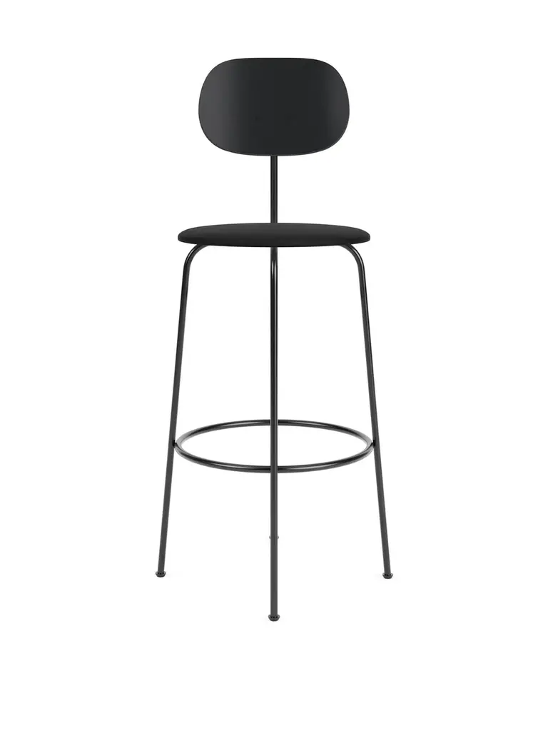 An homage to functionalism, the Afteroom Plus Bar & Counter Chair is a deconstructed design, stripped of unnecessary components to present a clean, minimalist aesthetic with high functional value. Its wide wood veneer backrest and generous upholstered seat ensure supreme sitting comfort, while the slender powder-coated metal frame is constructed for maximum stability with a foot ring that does double duty as a rest for feet. The result is a blissfully simple chair that embraces minimalism and clean lines without compromising on comfort.
