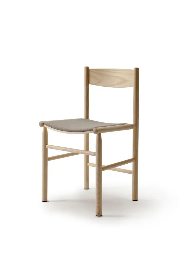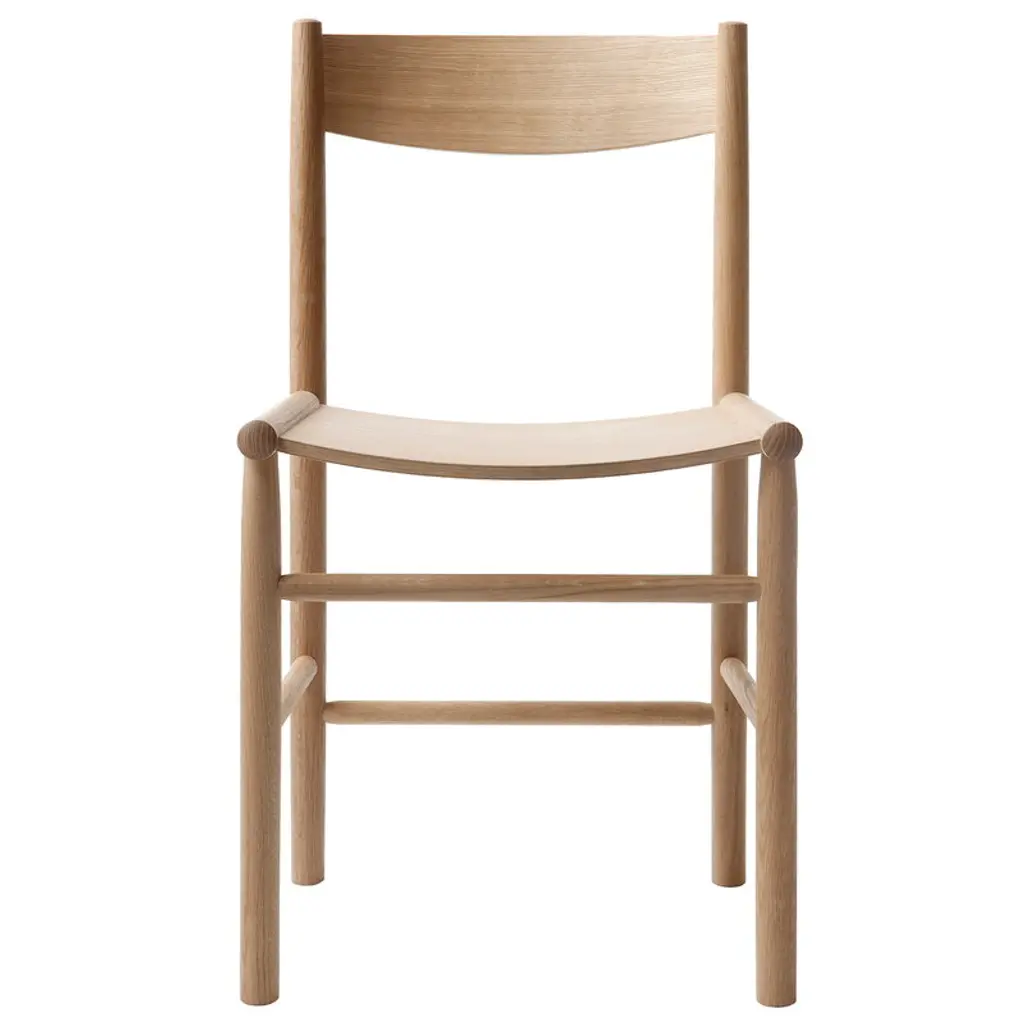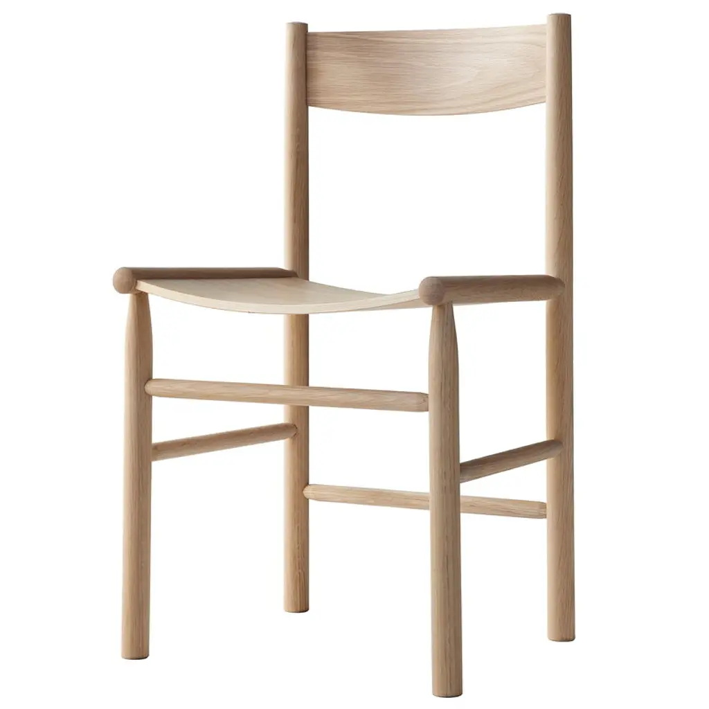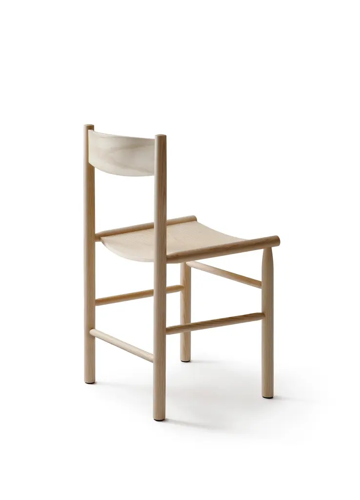 The light Akademia chair is designed by Wesley Walters and Salla Luhtasela in 2019. As the name suggests, the Akademia chair was the result of Wesley Walter’s Master’s Thesis work at Aalto University, Helsinki. The young designer, one-half of the design duo Kaksikko, together with his partner Salla Luhtasela studied the Finnish chair manufacturing heritage, the Shaker style, and Japanese tradition and combined these various elements to make the Akademia chair.MaterialsOakAshSurface finishLacquer, ashDimensionsWidth 460 mmDepth 470 mmHeight 810/460 mmOther informationOption: seat upholstery.