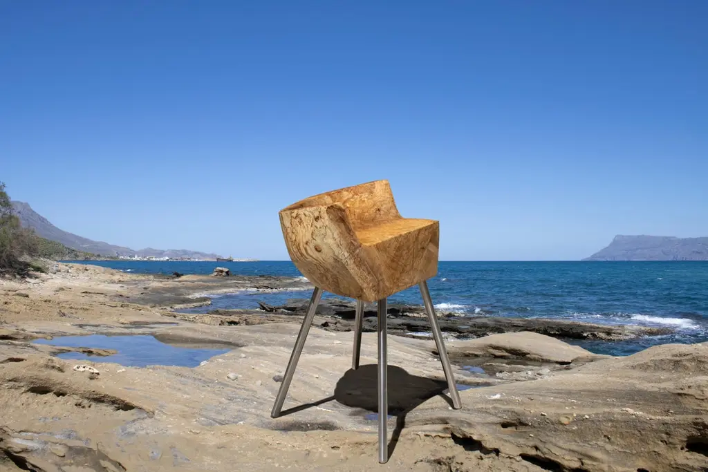 Minos armchair by Woody FidlerMaterials: Olive woodDimensions: W 38 x D 25 x H 56 cmSeat width 28.5 cmSeat depth 16 cmWoody Fidler feels honored to live in a country where olive growing dates back to 4000 BC, as documented in Minoan civilization.Deep love for the earth and deep respect for olive trees is the main reason why the artist realized the degree of waste during the extraction and use of wood.The experience gained gives him reason for his work.Sculptural furniture is made of recovered trees, damaged by the weather or human activities.The works created by the artist are born from a creative dialogue with the material from which he creates sculpture furniture.Everything starts and ends in the tree. The olive tree inspires the artist's search.Shapes, holes, cracks and the passage of time lead to a carefully selected design.Gives these trees a new life.