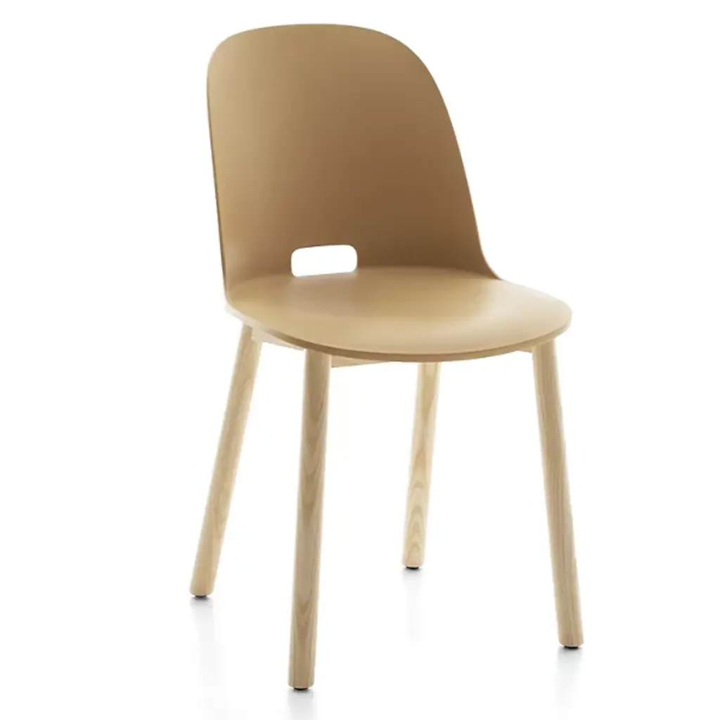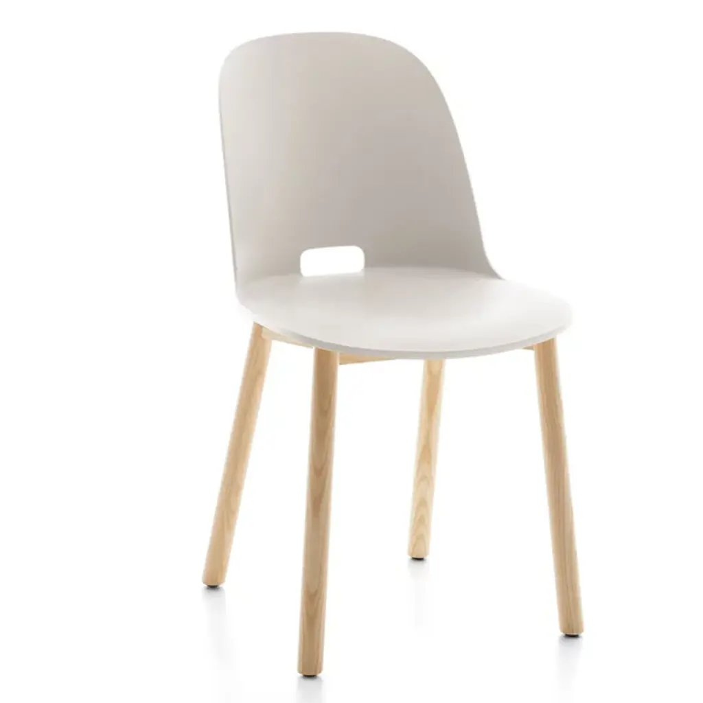 A Jasper Morrison take on the woven cane brasserie chairs seen lining the Parisian streets. One look at the Alfi Chair High Back with Alfi Soft Slip Cover from Emeco and you instantly realize that what you’re getting is a piece that has been refined to its beautiful core. The chair is a story about simplicity. Morrison factors in simplicity and humbleness into an aesthetic he calls “super normal.” He sketches out the essential contours of brasserie chairs and presents them to you in a single shaped seat. Made from sustainable materials, this tall, arching seat hugs the body on its own but is set off by a foam-filled, upholstered slipcover. The retrofittable and removable cover tightly wraps the seat, giving it an elegantly tailored look. Made from reclaimed wood, the slender legs delight in their unique textures and warm hues.