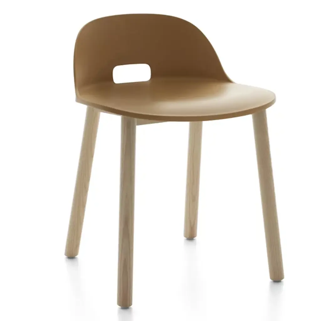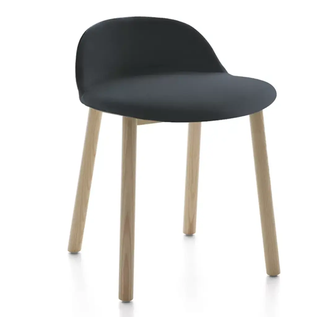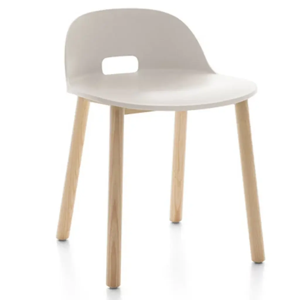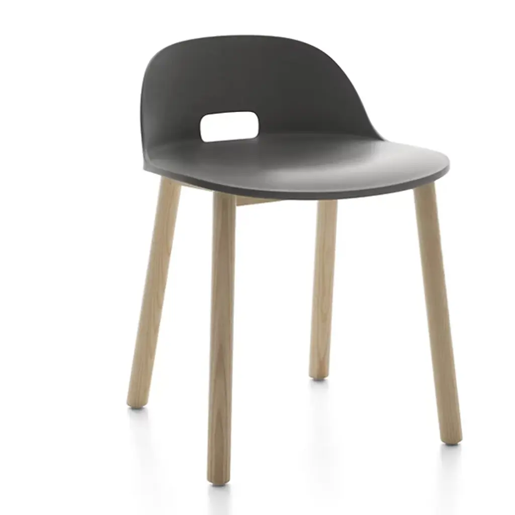 Charming, humble, discrete. The Alfi Chair Low Back with Alfi Soft Slip Cover from Emeco pays homage to the classic Parisian brasserie chairs in a simple yet thoughtful design. It’s a Jasper Morrison creation, illustrating his “super normal” aesthetic, one that feels natural, unpretentious. If you’ve strolled down the streets of Paris, you’ll instantly recognize the sweeping curves silhouetting the chair’s seat. The low-key seat is a pleasure on its own but provides a new level of comfort when you fit it with the included upholstered and foam cushioned slipcover. This removable and retrofittable feature proves to be soft on the eyes and the hands. Propping up the seat, reclaimed wood legs add an extra dose of charm in their organic texture.