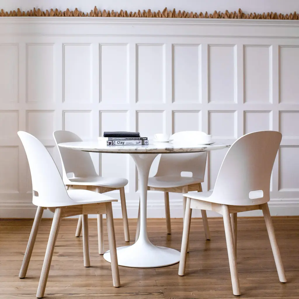 What you don’t see in the Alfi collection is as important as what you do see. The seat is made from 100% reclaimed materials with a speckled texture for a natural touch, and the legs are crafted from sustainably sourced wood.