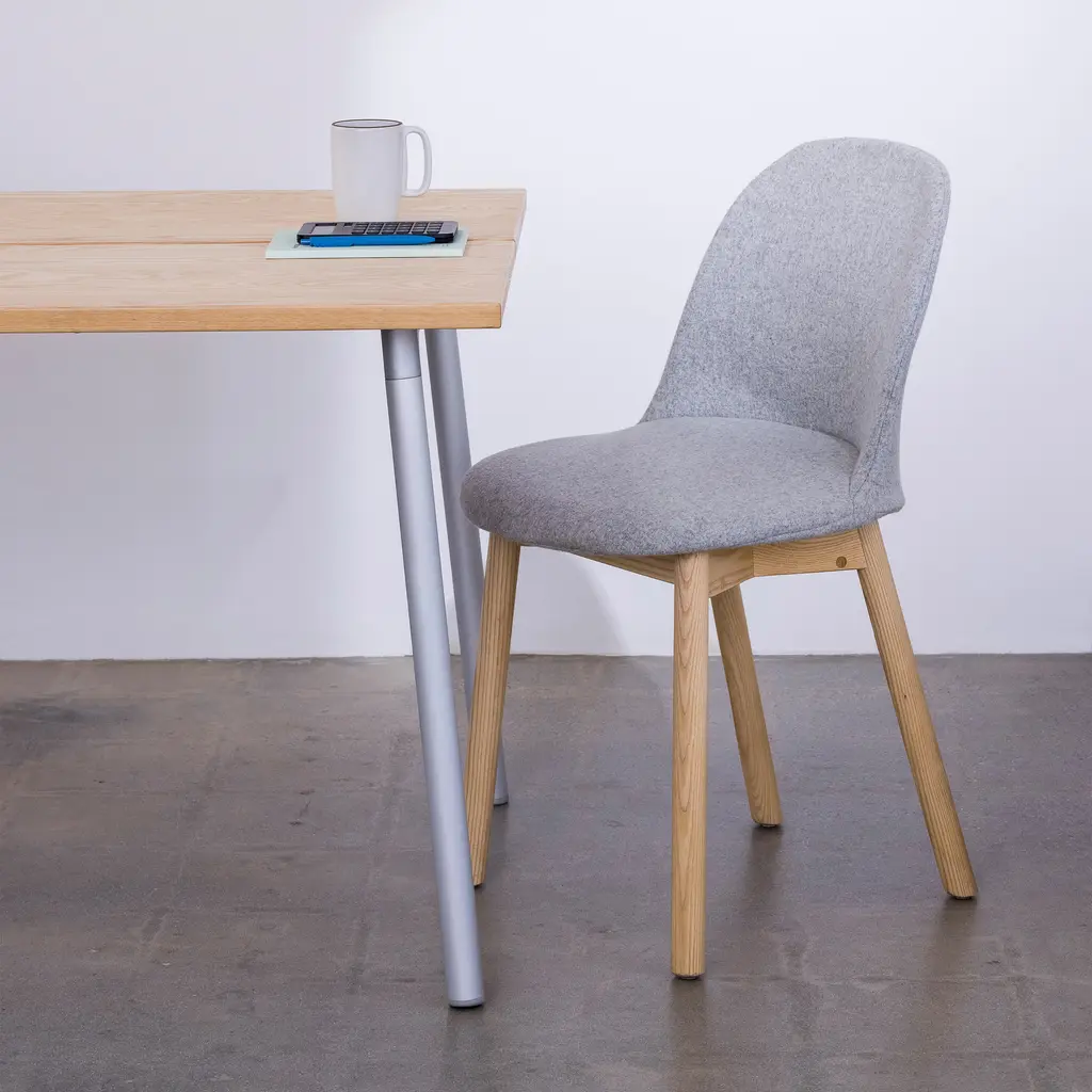 The Alfi Soft Chair “dresses” Alfi chair seat with an Alfi Soft Slipcover, offering the comfort and look of a perfectly fitted, fully upholstered seat. The slipcover is intelligently designed for easy dressing and removing. The chair is delivered dressed, but should you need to remove the slipcover, you have a fully functioning chair with a dark grey plastic seat underneath. Features
