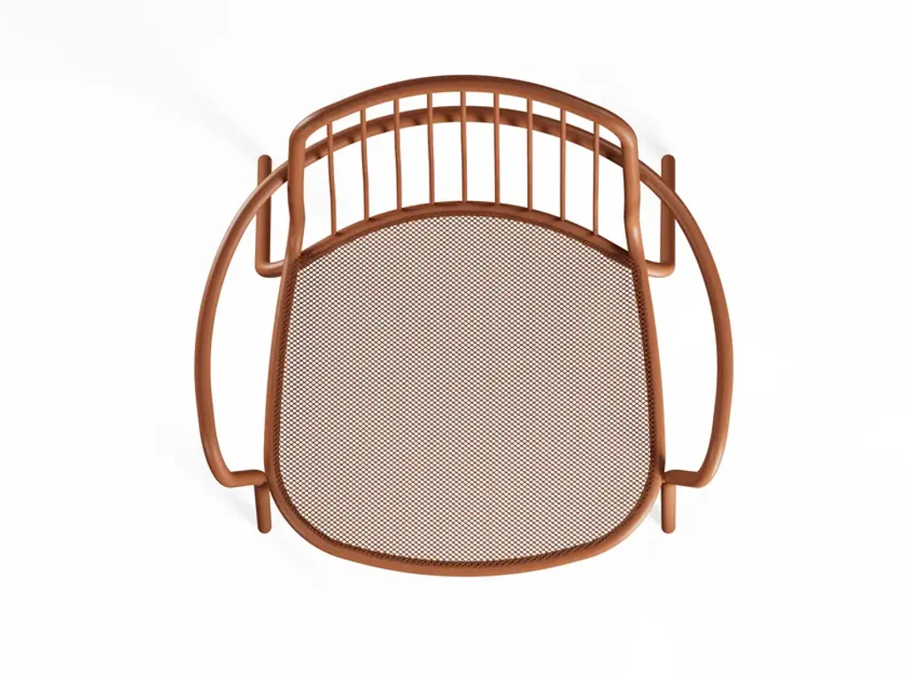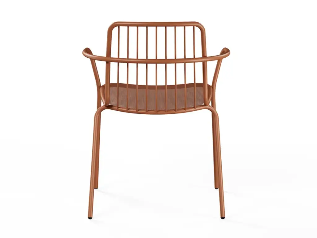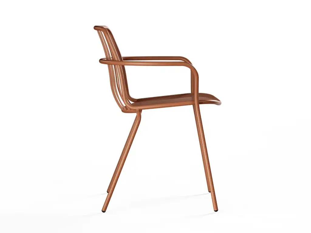 The Alisea contract seating collection, just like the wind, immediately evokes functional characteristics, such as lightness and essentiality. The airy texture of the metal seat and the visual regularity of the backrest rods recall the fluidity and movement of the wind. This design strongly merges two aesthetic languages , the one metal sheet one and and the rod one, expressing a sense of freedom and spontaneity. The Alisea collection combines two technologies and two different techniques: curved rod and expanded metal. Available with and without armrests.Alisea is proposed as a functional solution for street contract settings, easily matching various styles of such environments for its design and its wide colour range.Stackable up to 8 pieces.