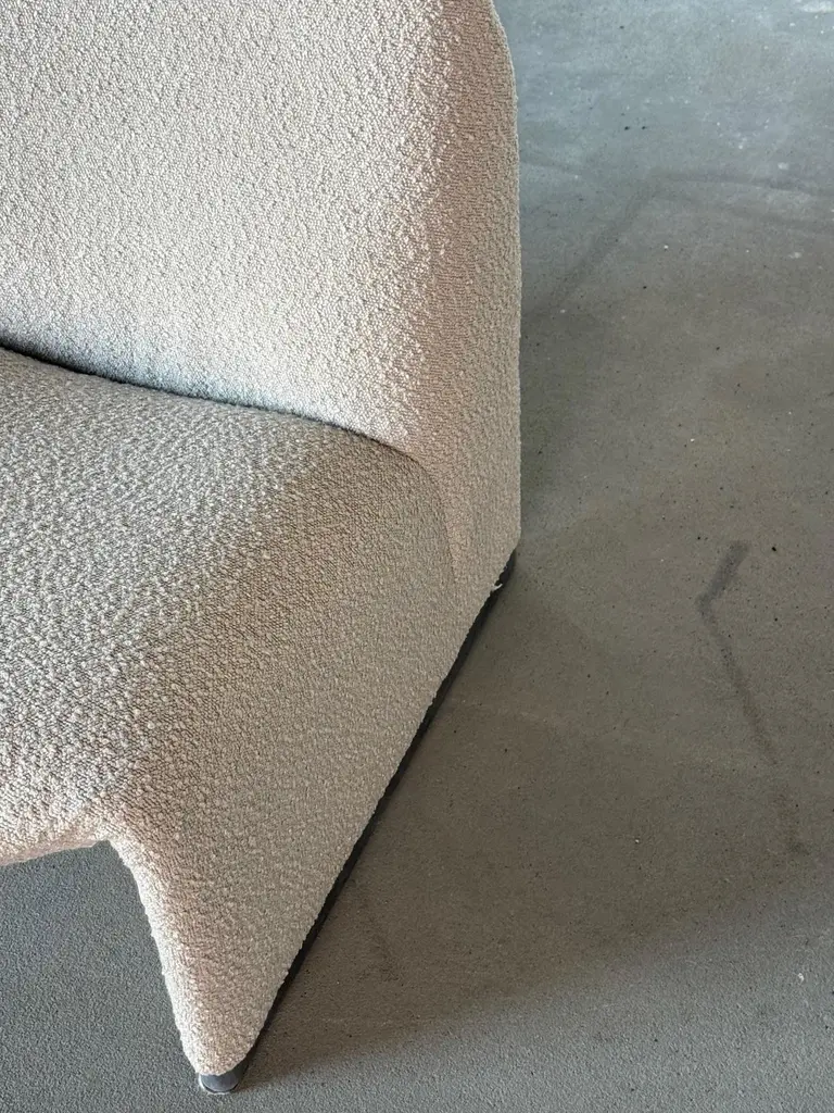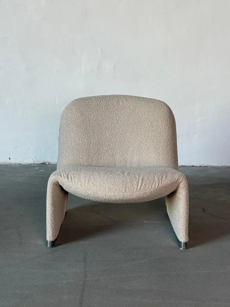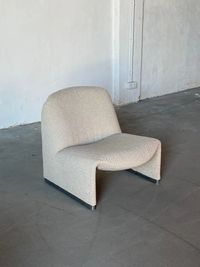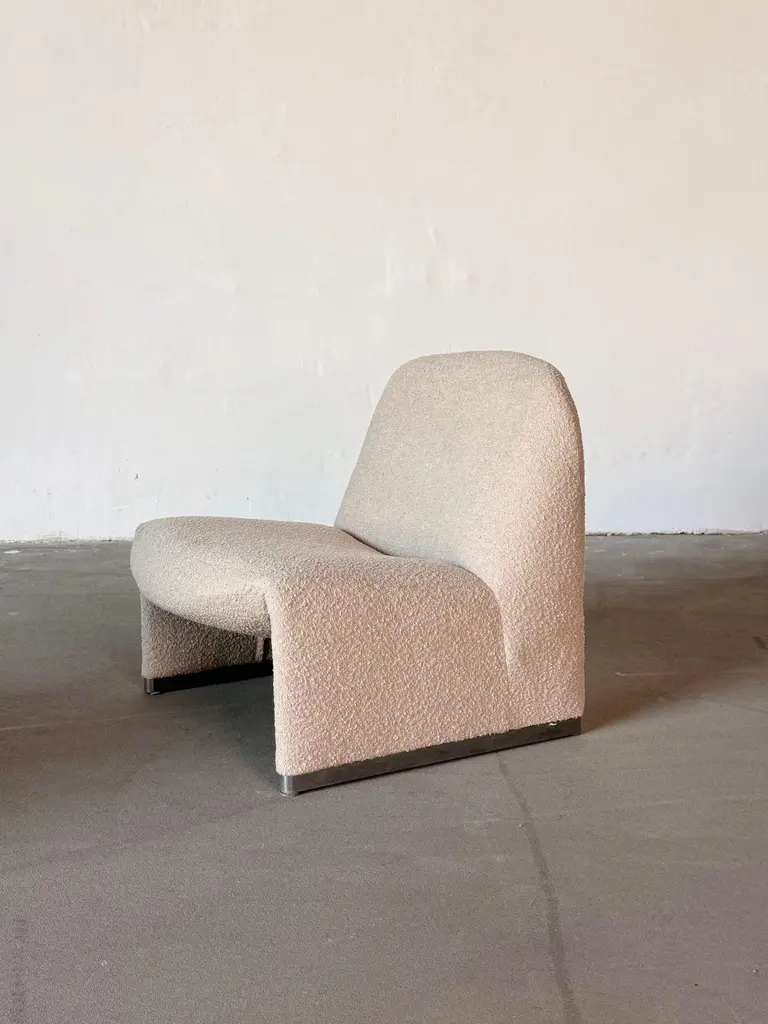 FREE LOCAL DELIVERY WITHIN NEW YORK CITYThis beautifully restored Alky chair, originally designed by Giancarlo Piretti for Artifort in the 1970s, is a refined example of Italian design merging sculptural form with everyday comfort. The chair has been fully reupholstered in high-quality bouclé fabric in an elegant seashell tone, bringing a fresh, contemporary touch while honoring its timeless silhouette.The Alky’s curved, low-slung frame and subtly flared legs give it a unique architectural presence. Its generous seat and soft foam cushioning make it as inviting to sit in as it is striking to look at. The new textured bouclé adds warmth, softness, and a tactile richness that complements both minimalist and eclectic interiors.Presented in excellent condition following a meticulous restoration, this iconic lounge chair is ideal as a standalone statement piece or as part of a curated seating arrangement. A true collector’s item with a modern twist.