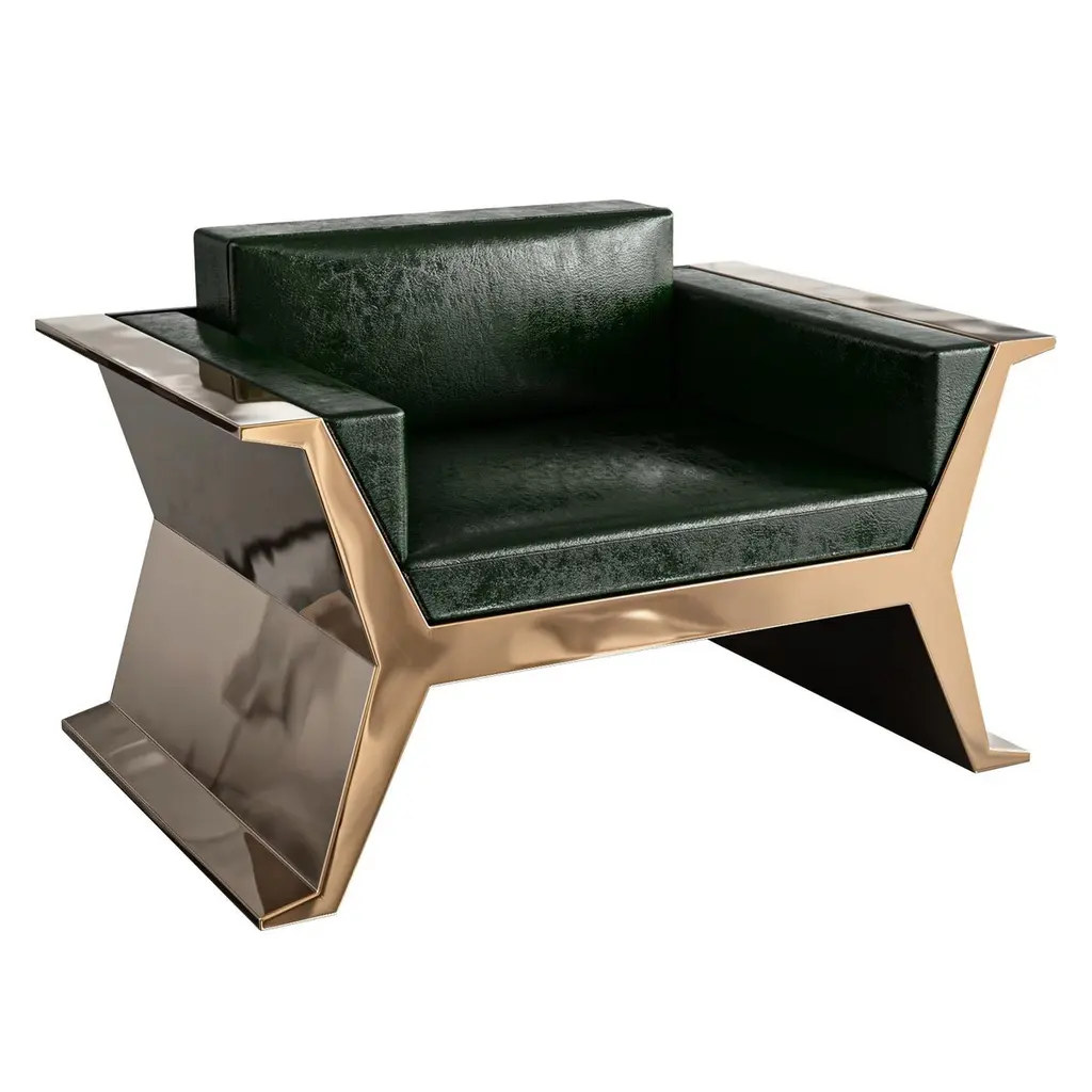 "Alphacute" Club Chair With Bronze, Handcrafted, Istanbul