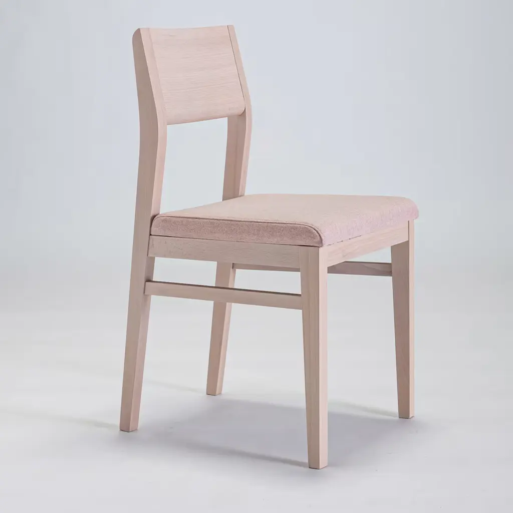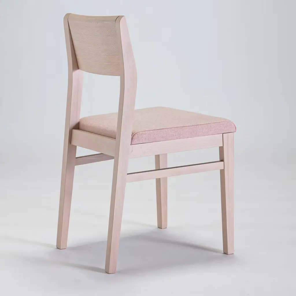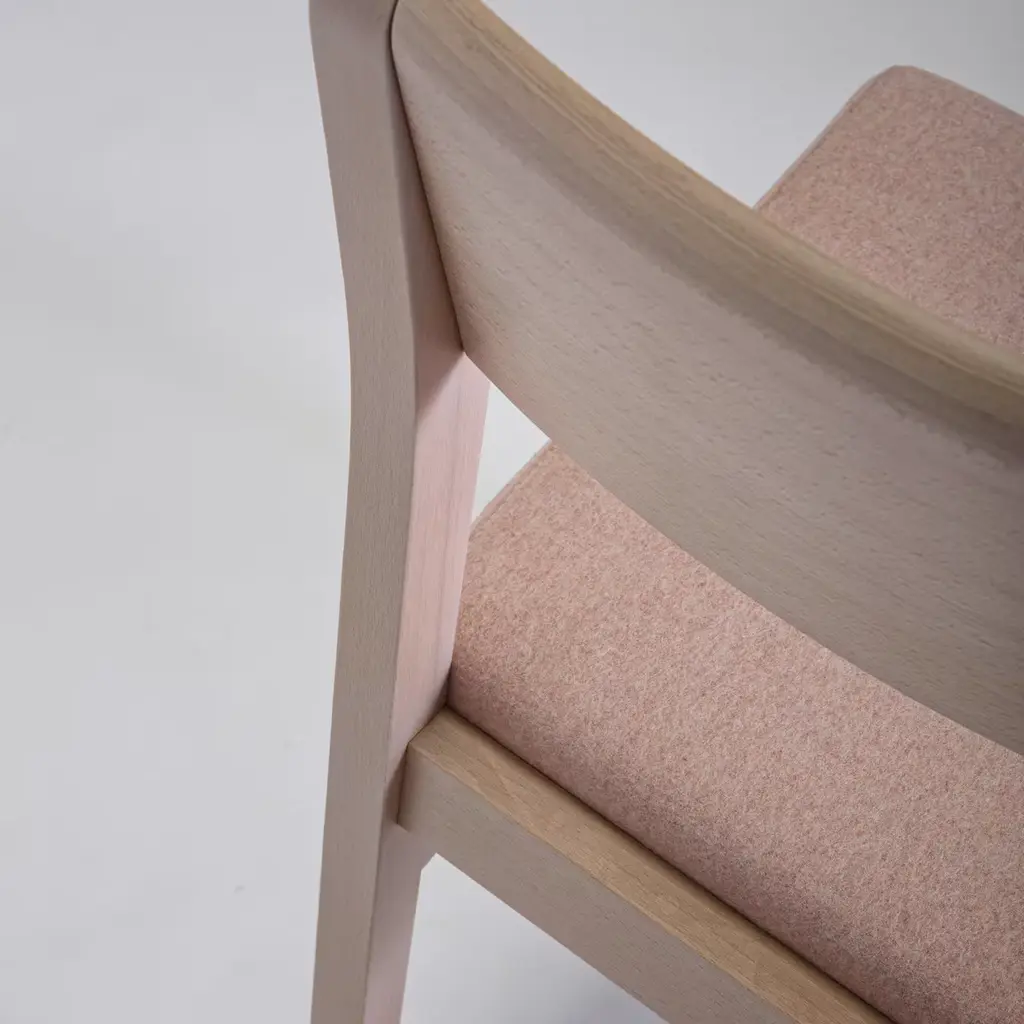 A clean and essential design superbly handcrafted of refined materials, this chair exudes a romantic and sophisticated charm that will uniquely adorn any style decor. Fashioned of solid beech showcasing a splendid natural finish, it is completed with a delicate pink fabric upholstery covering the ergonomic seat. Available in a range of fabrics, leathers, or eco-leathers, please ask the Concierge for details.