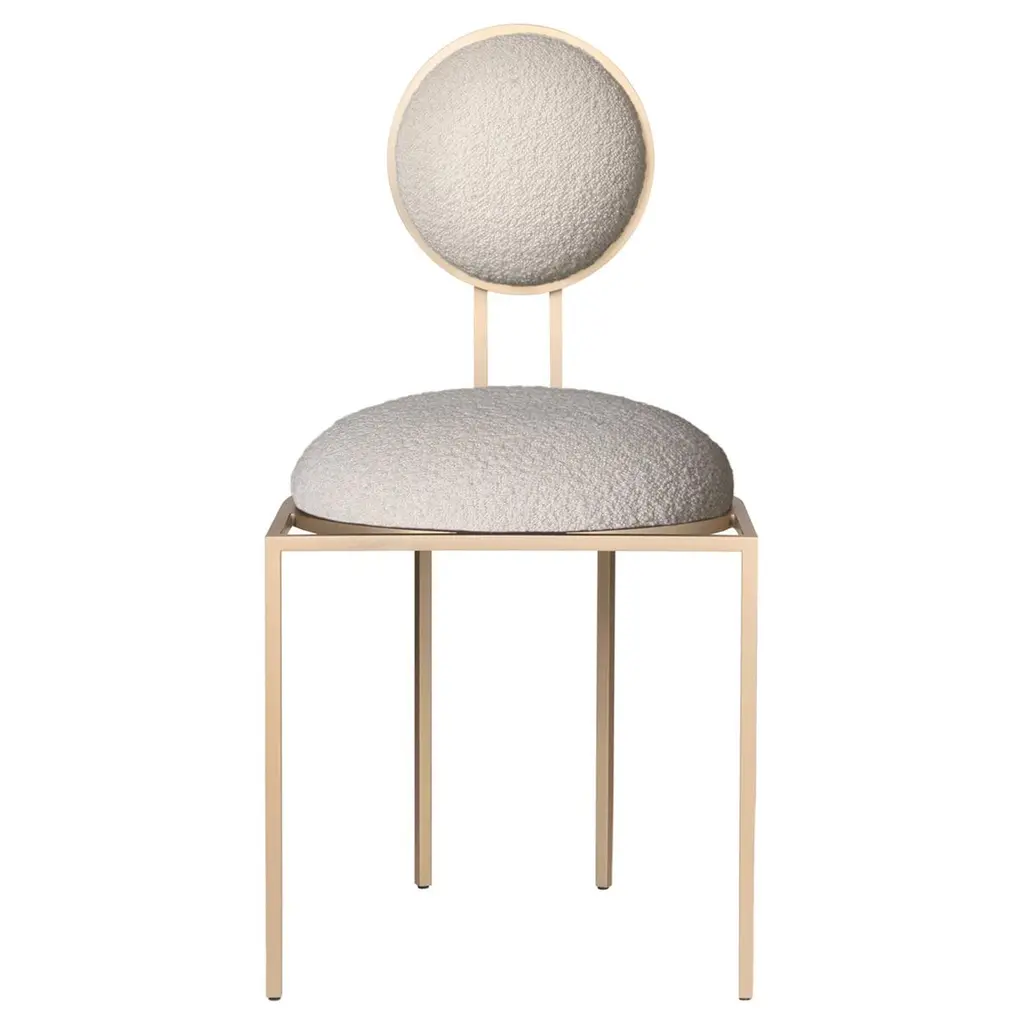 Velvet chair with metal structure.