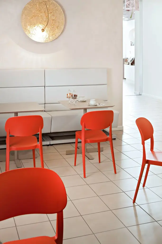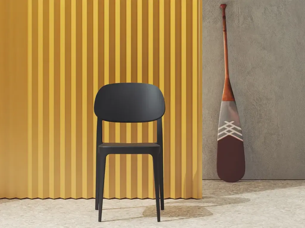 Essential design, harmonious and light shapes able to adapt themselves in any space with discretion and strenght to make it a special place. The exclusive charming seat Amy is made of polymer and UV-resistant material. Born from the advanced air moulding technology and available in a wide range of shades that recalls the earth colours, Amy is a perfect stackable chair offered without arms. These simple and polished shapes make Amy a design object which features any indoor or outdoor spaces.