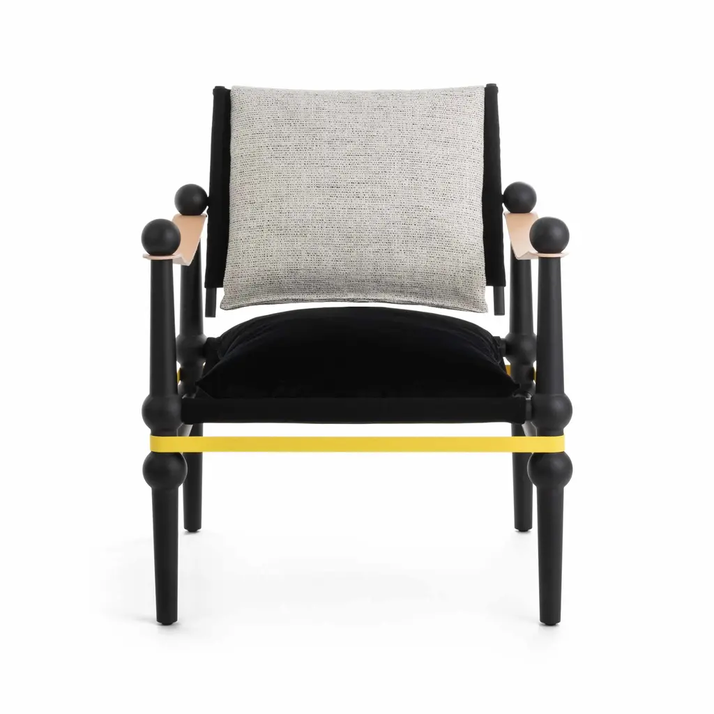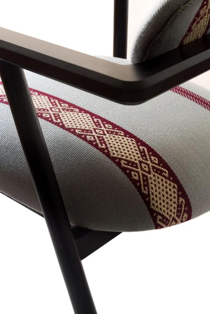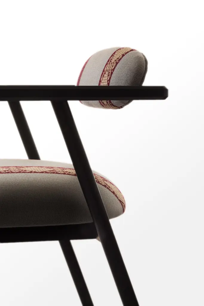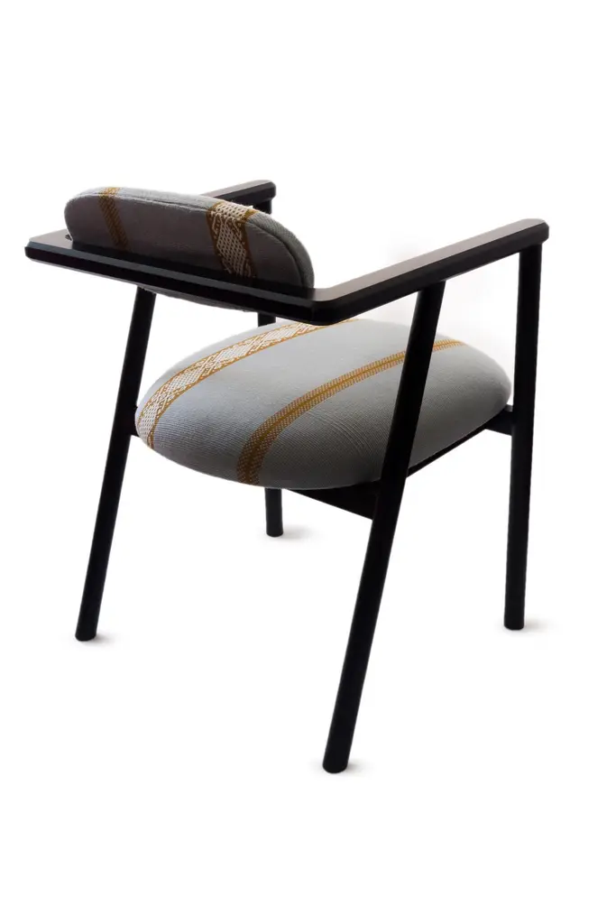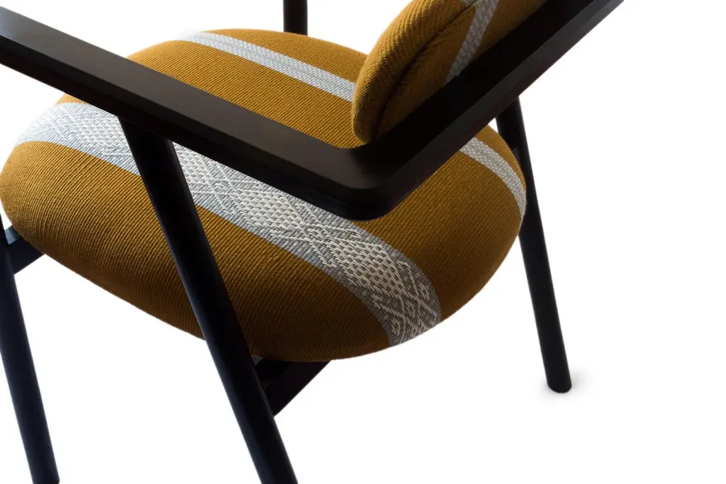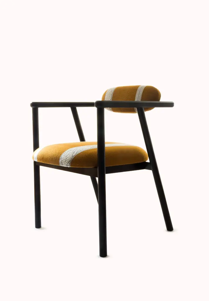 Anastasia chair, by Camilo Andres Rodriguez MarquezDimensions: D 51 x W 56 x H 77 cmMaterial: Wood and fabric Anastasia finds the equipoise between modernity and tradition; balancing elements from both the contemporary and highlights of ancient techniques from the Colombian ethnic Community Kamentza. The latter is expressed in the “chumbe”; a cosmological representation of fertility by including an abstraction of the female uterus that has become part of the upholstery.Camilo Andres Rodriguez Marquez is a Colombian born designer with a degree in Industrial Design from Colombia (FUAC) and Mexico (UNAM). He is fascinated by photography and cinematography, and intends to unify these two artistic expressions into his design in the form of narrative, projecting and communicating the interaction between the world and his objects. In his visits to several places in Mexico, such as San Juan Chamula in the sierra of Chiapas, Tzintzuntzan in Michoacán or Real de Catorce in San Luis Potosí, he was exposed to experiences that provided him with the awareness of how traditions, storytelling and rituals play an important role on how humans interpret their reality and our role in the universe. CarmWorks creates handmade furniture influenced by the observation in nature and inspired by three simple realities: nothing last, nothing is complete and nothing is perfect.