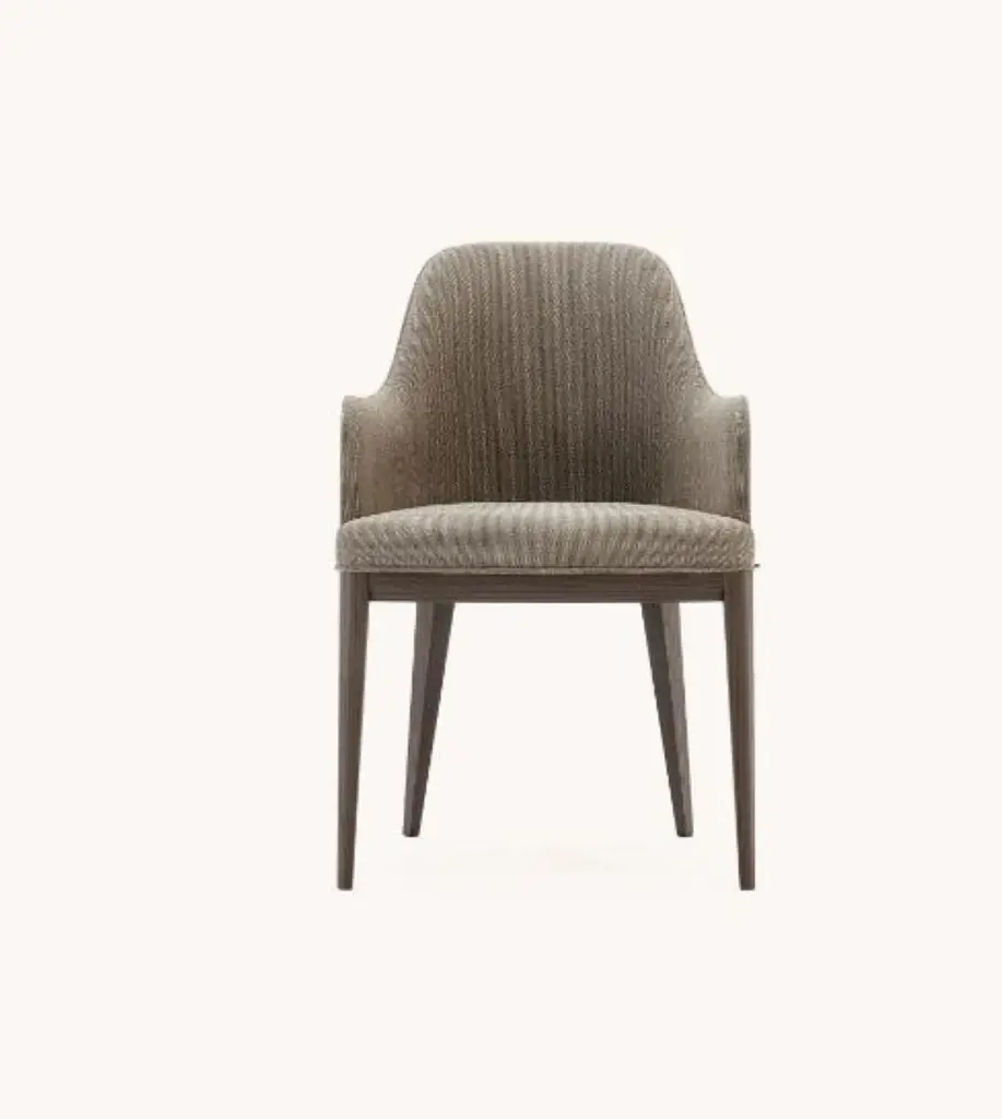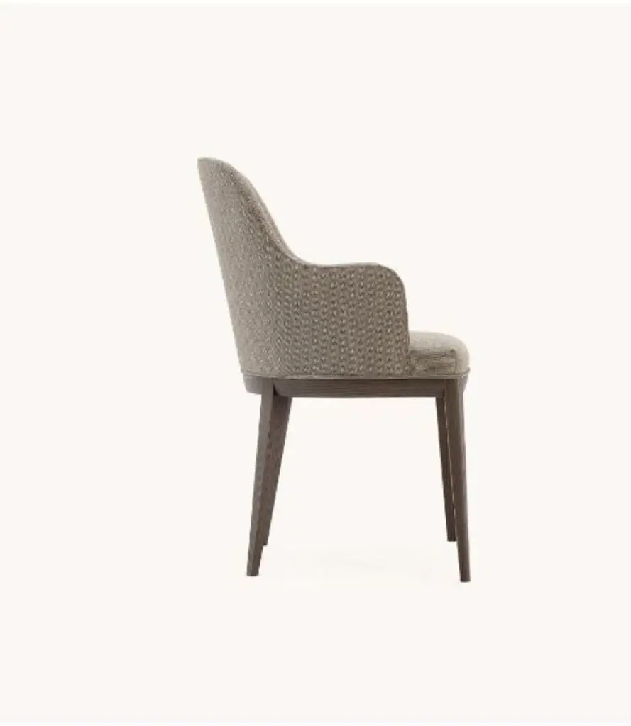 Anna chair with armrest by DomkapaMaterials: Fumé Stained Ash, Fabric, Wooden baseboard. Dimensions: W 56 x D 57 x H 86 cm. Also available in different materials. This timeless chair design is the result of a mature awareness process inspired by different ideas and experiences. Available in four distinct versions, it includes two options for armrest customization (with or without armrest) as well as two customization options for the base (four legs or a sled base). Concerning the base, you can choose a wooden or metallic finish. Meanwhile, the upholstered seat and backrest can also be customized with contrasting fabrics. Anna chair is a playground piece for professionals, allowing endless customization options for limitless results.Domkapa holds a tremendous passion for detailed stitching, presenting several similarities to the haute-couture philosophy focused on the value of a “made by hand”. Based in Portugal, Domkapa was founded in 2009 as a Private Label. The long and fruitful path, full of experience and achievements inspired the brand’s new identity and independence, in 2017.Domkapa challenges its team to create the perfect daily meeting between design and comfort in each piece of the brand’s collections. Our design team works side by side with the production, and this organic synergy allows the creation of innovative designs.