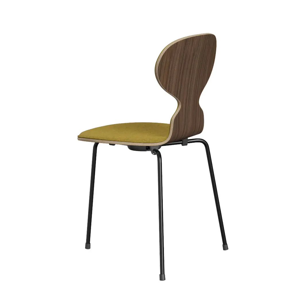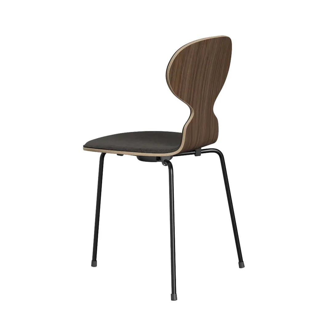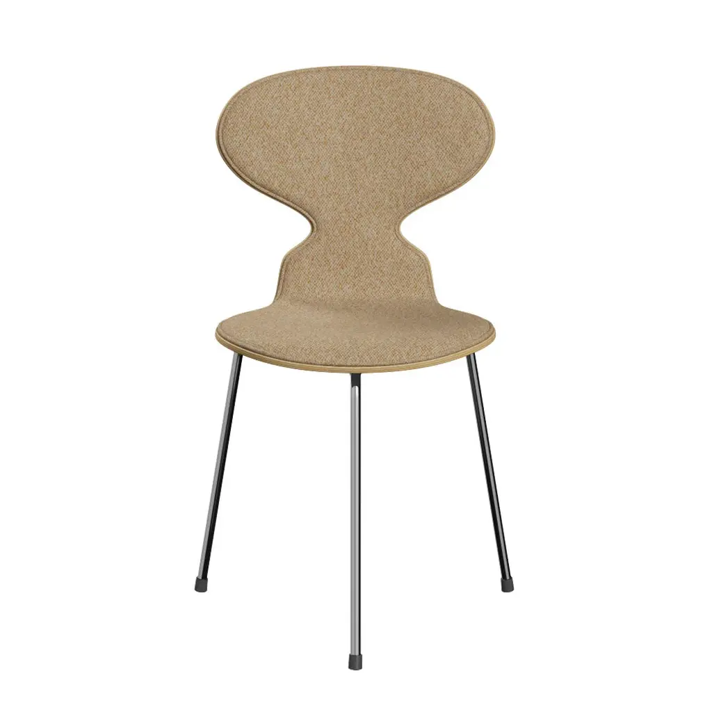 The Ant chair's visual expression is delicate and artful, much like the curves of a musical instrument. Its elegant shape disguises its remarkable strength and comfort. The Ant is now available with front upholstery in a wide range of textiles and leathers. The chair's shell is made of pressure moulded veneer and comes in natural, coloured ash or lacquered veneer. The base comes with an option of 3 or 4 legs made of chromed or powder-coated tubular steel.