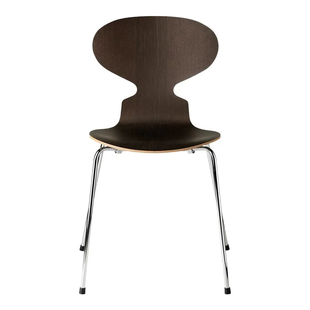 Initially, Arne Jacobsen designed the Ant for the canteen at Novo Nordic, an international Danish healthcare company. Today, the Ant is one of the prominent icons of the collection. Originally, the Ant was, however, close to ending up as just another prototype, because Fritz Hansen wasn't convinced of the chair's potential. The chair survived the initial scepticism, when Arne Jacobsen guaranteed to buy all chairs produced, if no one else would. Despite its minimalist form and svelte shape, the Ant is an extremely comfortable chair. The Ant with four legs was a later version of model 3100 and it was not before 1971, after the death of Arne Jacobsen, the four-legged version became an official product in the collection.