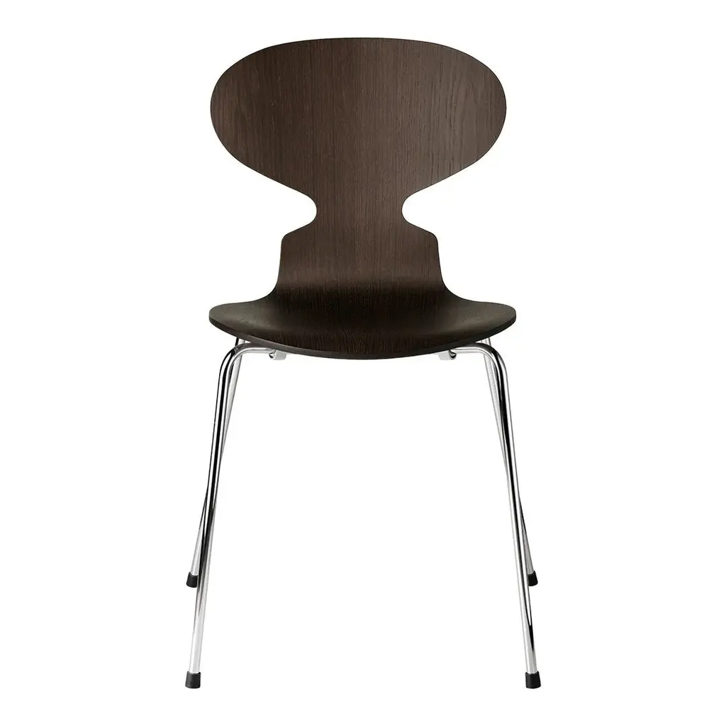 Initially, Arne Jacobsen designed the Ant for the canteen at Novo Nordic, an international Danish healthcare company. Today, the Ant is one of the prominent icons of the collection. Originally, the Ant was, however, close to ending up as just another prototype, because Fritz Hansen wasn't convinced of the chair's potential. The chair survived the initial scepticism, when Arne Jacobsen guaranteed to buy all chairs produced, if no one else would. Despite its minimalist form and svelte shape, the Ant is an extremely comfortable chair. The Ant with four legs was a later version of model 3100 and it was not before 1971, after the death of Arne Jacobsen, the four-legged version became an official product in the collection.