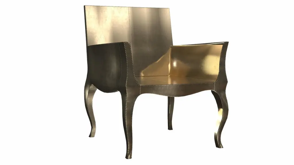 Introducing the Art Deco Chairs, a stunning Art Deco Chairs set designed by the renowned Paul Mathieu for Stephanie Odegard. This elegant Art Deco Chair duo boasts a unique curved profile that exudes a sophisticated and timeless charm, making it the perfect addition to any modern or classic interior.Crafted with utmost care and attention to detail, these Art Deco Chairs are made to order and are available in twelve metal clad finishes, ensuring that you can choose the perfect one to match your individual style and taste. The use of high-quality materials and expert craftsmanship ensure that each Art Deco Chair is not only beautiful but also a true piece of art.The curved legs and side arms of this Art Deco Chair are hand carved from solid pieces of teak. Pattern makers trace and cut complex forms that will cover the chair in a skin of copper, white bronze, brass or antiqued white bronze The metal finishes will tarnish over time. Regular non-abrasive household metal polishes can be used to restore the original luster.Overall, if you're looking for a piece of furniture that combines luxury, comfort, and style, then the Art Deco Chairs is an excellent choice. With its distinctive curved profile and multiple finish options, this Chair set is sure to elevate the look of any room it is placed in, and be a beloved addition to your home for years to come.The images shown in this listing are shot in different lighting conditions and/or are 3D illustrations. We encourage our customers to please request a sample or a full sample set of 12 finishes so that they can experience the finish first hand. Antique Art Deco Chairs Smooth Brass by Paul Mathieu for S. OdegardSize- 26"x 27"x 33"HMaterials - Brass, Metal sheet, Teak, Wood, MetalTechniques: Hand-Crafted, Hand-Carved, Metal Work, Wood Work, Metal Wrapping, PolishedPlease note that moisture in air, sudden change in temperature and natural movement of wood over time causes the metal to wrinkle or bubble up. We use well seasoned, reclaimed teak and high quality marine grade MDF (wherever technically possible) to avoid and delay the mentioned changes. However a perfect stability of metal cannot be guaranteed. Please note that our smooth finish metal clad pieces will have some unavoidable tool marks. This is proof that everything is done by hand. The smooth finish will not come out like a machine made perfect surface and the master artisan will do their best to make it look as good/clean/stable/perfect as he possibly can.The antique white bronze finish is hand done by using an acidic chemical over the white bronze finish to recreate a natural patination. Like with the natural patination of silver, copper, or brass, the final result and color uniformity of the patina cannot be guaranteed. The goal of this finish is to achieve rainbow-like shades with dull, shiny, cloudy, and streaky patches to give an illusion of antiquing. Please note:None of our metal clad pieces are treated with a protective “finish” thus enabling the items to age naturally over time. We will of course polish them well before we pack them. a) Copper oxidizes faster than the other metals. In six to twelve months it will most likely lose its shine and will gradually turn to different shades of brown and/or green/blue. This aging process and its effect is referred to as verdigris. After a year the piece should not change much more. Copper does not rust, but does require periodic cleaning in order to retain its original shine if that the preferred option. ('BRASSO' or any known copper polish can be used to polish copper).b) Brass retains its shine for far longer than others, but will tarnish if not cleaned on occasion. ('BRASSO' is made to polish brass).c) White bronze, has the least tendency to show age or tarnish. If kept in a controlled climate, this metal will hold its shine for years. It can be cleaned with a cleanser and polished with a cloth. d) The antiqued white bronze finish will react with the natural elements the fastest in the beginning but it too will stop reacting and will settle down in a stable state like copper after 6-12 months. Since it is already antiqued and looked like it is tarnished, as described in an earlier message, this fast reaction will not change the over all look. In that way this surface is most forgiving. The images shown in this listing are shot in different lighting conditions and/or are 3D illustrations. We encourage our customers to please request a sample or a full sample set of 12 finishes so that they can experience the finish first hand.