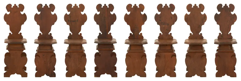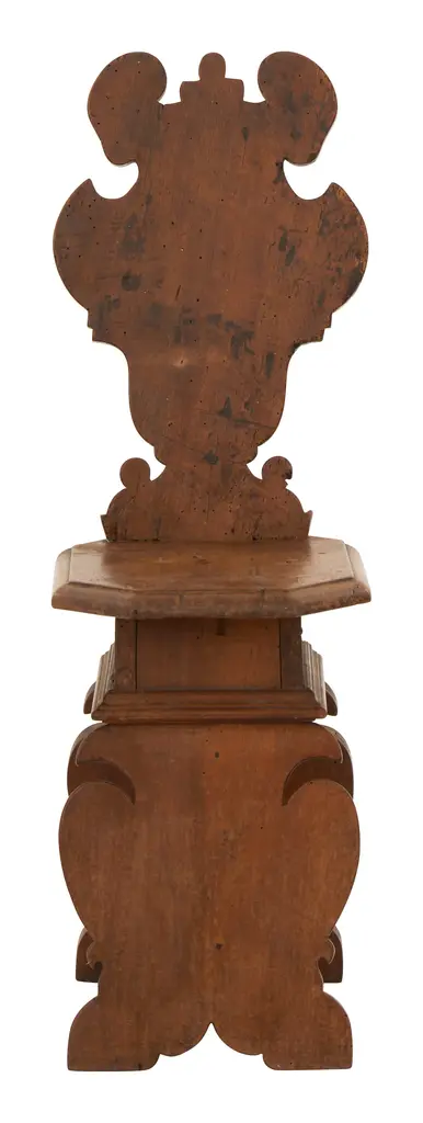 •up to 8 available (pending availability) •up to 8 available (pending availability) •patinaed wood finish•in the tyrolean style•18th century•italy Dimensions•12.25"W x 16"D x 36"H•seat: 12.75"D x 17.5"H •up to 8 available (pending availability) •up to 8 available (pending availability) •up to 8 available (pending availability)