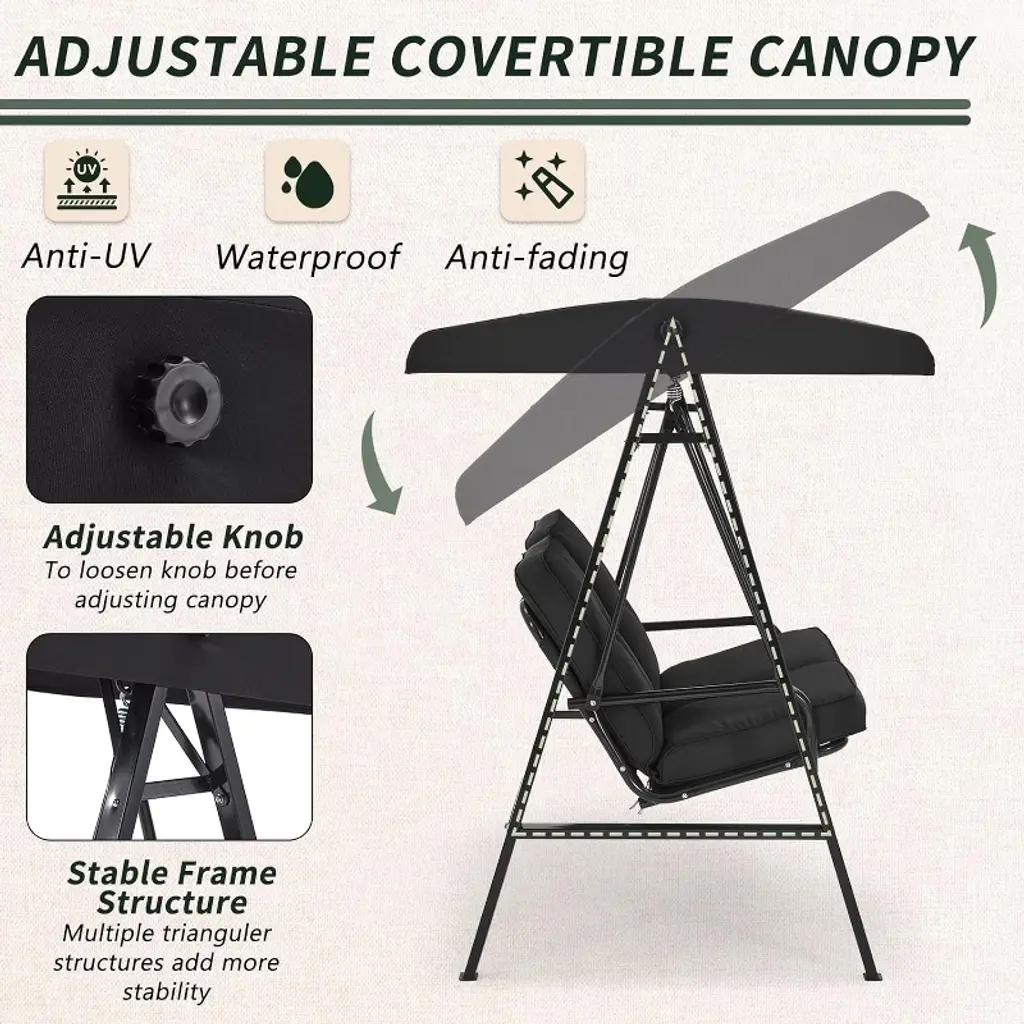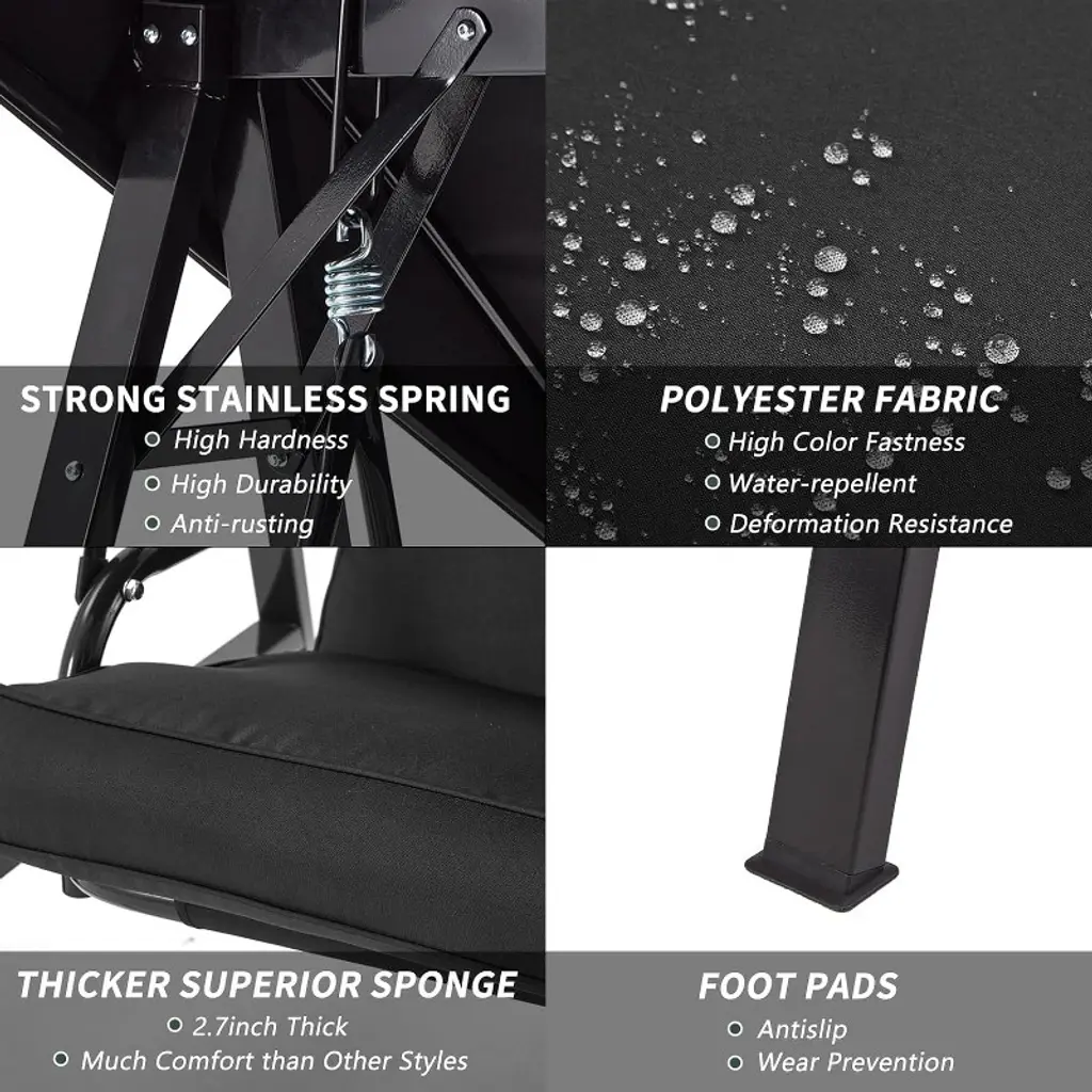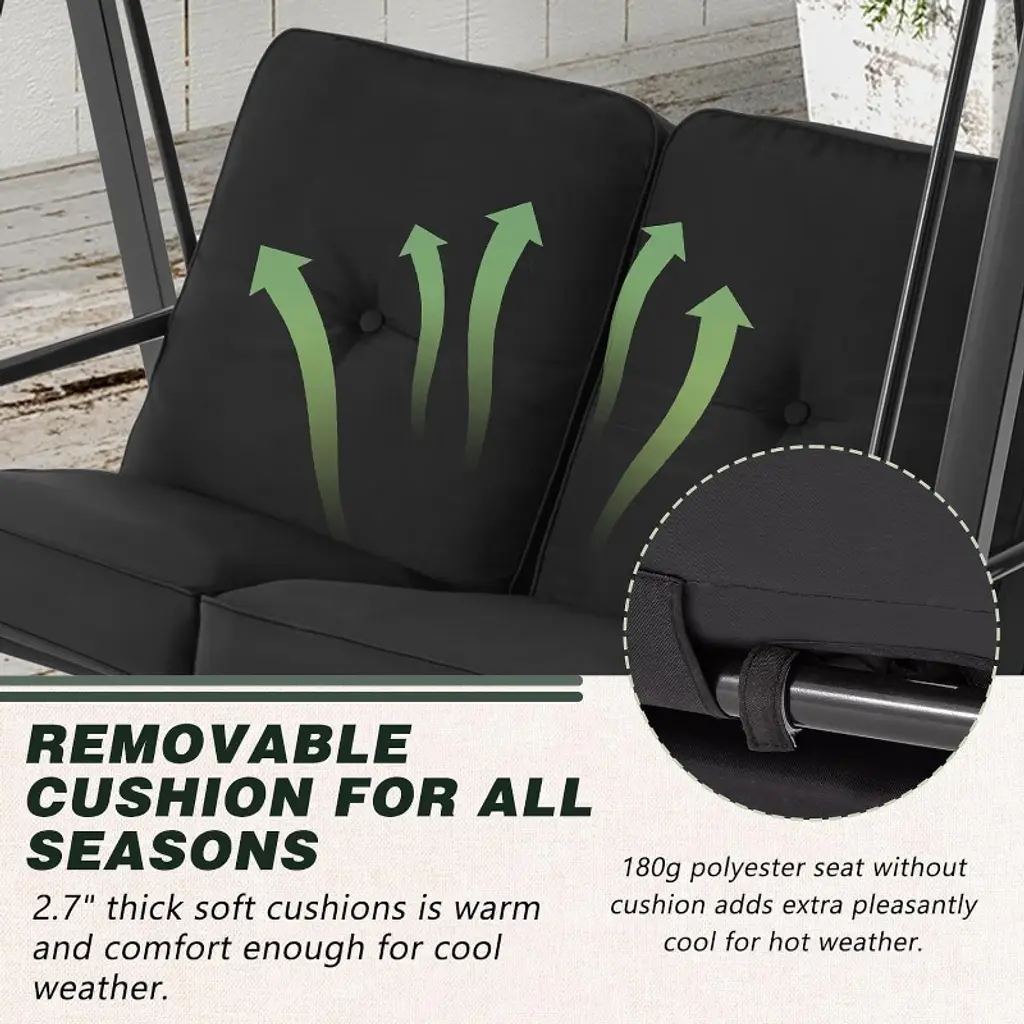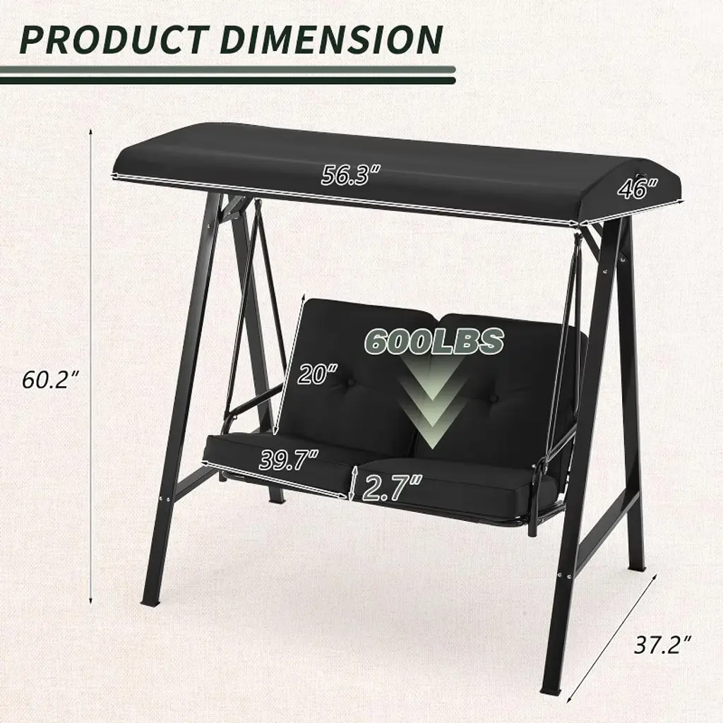 Sturdy frame ensures stability and comfort for outdoor use. Provides a relaxing seating experience for two people. Crafted from durable polyester fabric and an iron frame for long-lasting support.