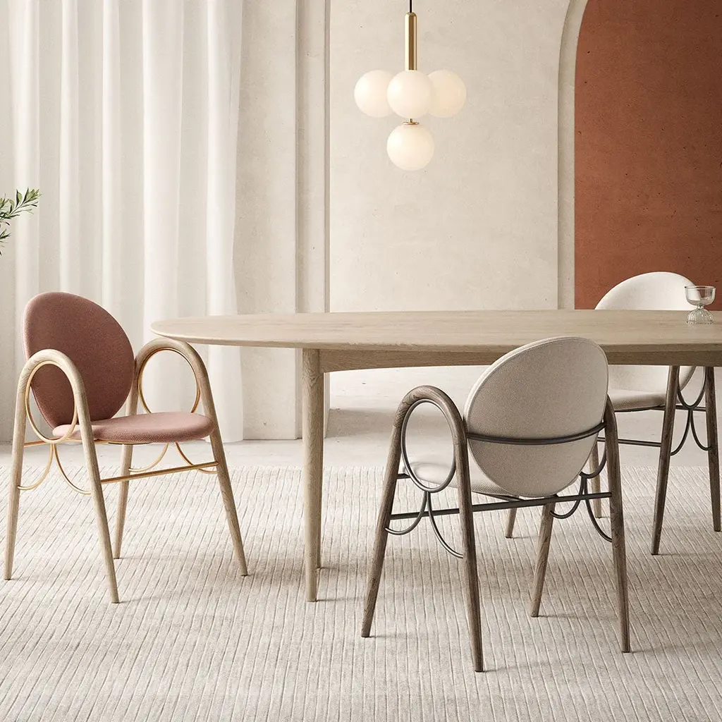 The Arkade Chair is a previously unreleased chair by Danish architect Nanna Ditzel, designed in 1983. The design exemplifies Ditzel's hallmark of elegant geometries and fondness for soft circular shapes, expressed with recurring arches, hence the name Arkade (the Danish word for Arcade), and a nod to classic architecture. The Arkade Chair unfolds wide possibilities for designers and architects, to work with a chair full of personality and materiality. True to Ditzel's love for decoration and colors, a wide spectrum of materials is available, including steam bend solid oak, metal finishes in brass, black oxide and chrome, as well as wood veneer seating or full upholstery in various textiles or leathers.