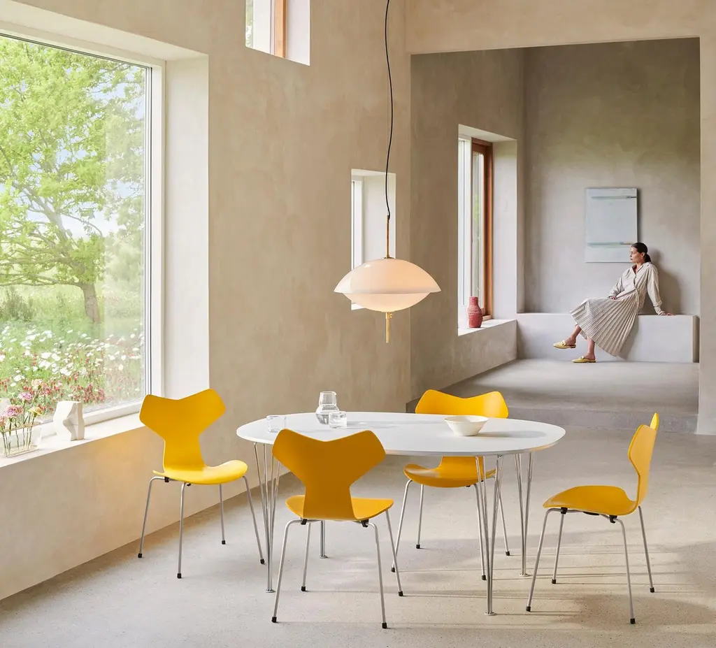 Arne Jacobsen 'Grand Prix' Chair for Fritz Hansen in Lacquered Veneer.Established in 1872, Fritz Hansen has become synonymous with legendary Danish design. Combining timeless craftsmanship with an emphasis on sustainability, the brand’s re-editions of iconic pieces from such Danish Modern greats as Arne Jacobsen, Hans J. Wegner, and Vico Magistretti pay homage to the originals while thoughtfully incorporating innovation and responsibly sourced materials.The 'Grand Prix' chair has remained an iconic piece of design history since its conception. It was introduced at the Designers’ Spring Exhibition at the Danish Museum of Art & Design in 1957. Later that year, the chair was displayed at the Triennale in Milan, where it received the Grand Prix, the finest distinction of the exhibition. This re-edition by Fritz Hansen remains faithful to the designer's vision and is executed using only the highest quality materials. Price is per item. Available in unlimited quantities. Choice of clear lacquered veneer, colored veneer, or lacquered veneer; un-upholstered, partially upholstered, or fully upholstered in fabric or leather. Also available with choice of metal or wooden legs. Chairs with metal legs available in 16.9", 18.1" or 18.9" seat heights; wooden legs available in 16.9" or 18.1" seat heights. Prices vary; list price reflects un-upholstered 'Grand Prix' chair with metal legs and lacquered veneer finish. Please specify color and seat height when ordering.In stock lead time of 12-16 weeks. Out of stock can add an additional 8 weeks or more. Please note that lead times, cost and inventory availability are subject to change without notice. Please inquire for current lead times prior to placing time sensitive orders.Please note that all Fritz Hansen furniture pieces must ship directly from the manufacturer; as such, 1stDibs arranged shipping is not an option. Local pickup from our Los Angeles based showroom, however, is available. Kindly contact us for the most accurate shipping rates prior to purchasing.Made to order. All sales final.