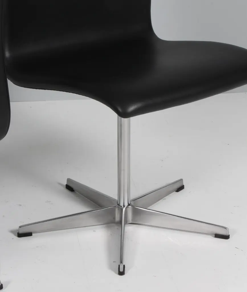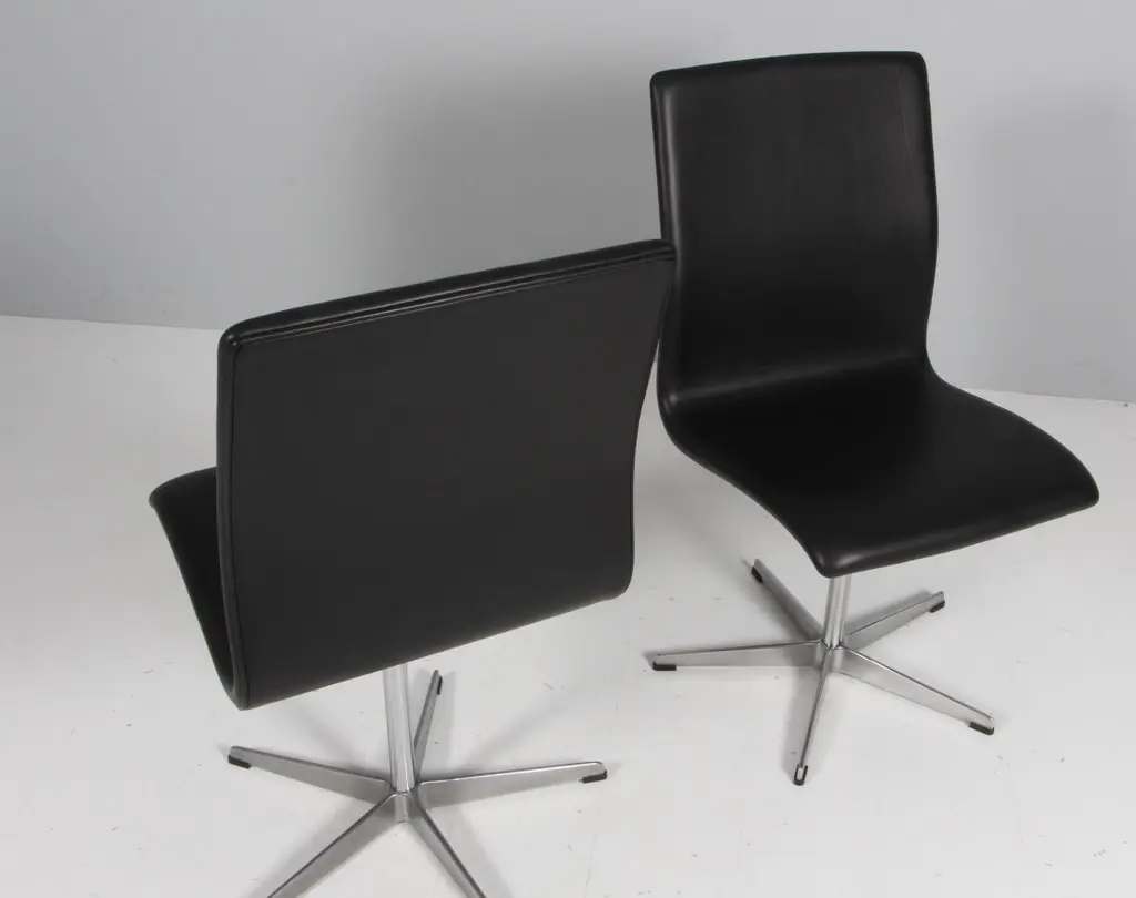Arne Jacobsen Oxford chair five star base in aluminum.New upholstered with black pure aniline leatherMade by Fritz Hansen.Original designed for the Oxford university.