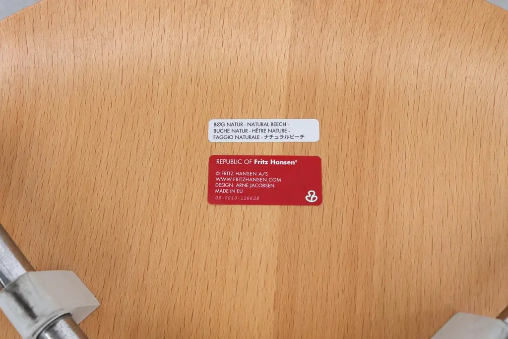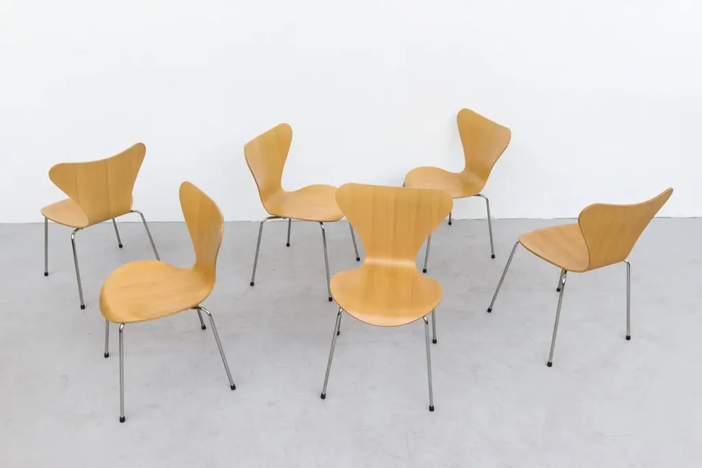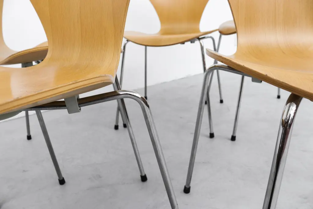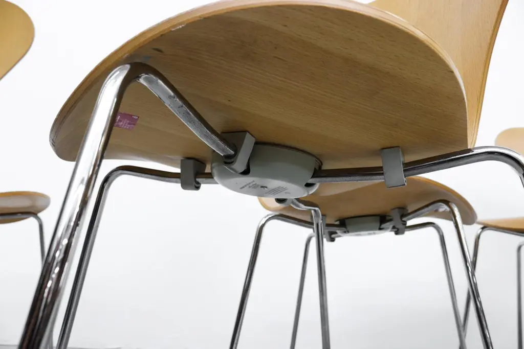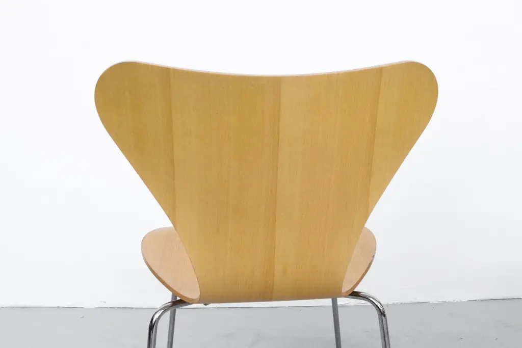 Arne Jacobsen "Series 7" Stackable Beech And Chrome Chairs For Fritz Hansen