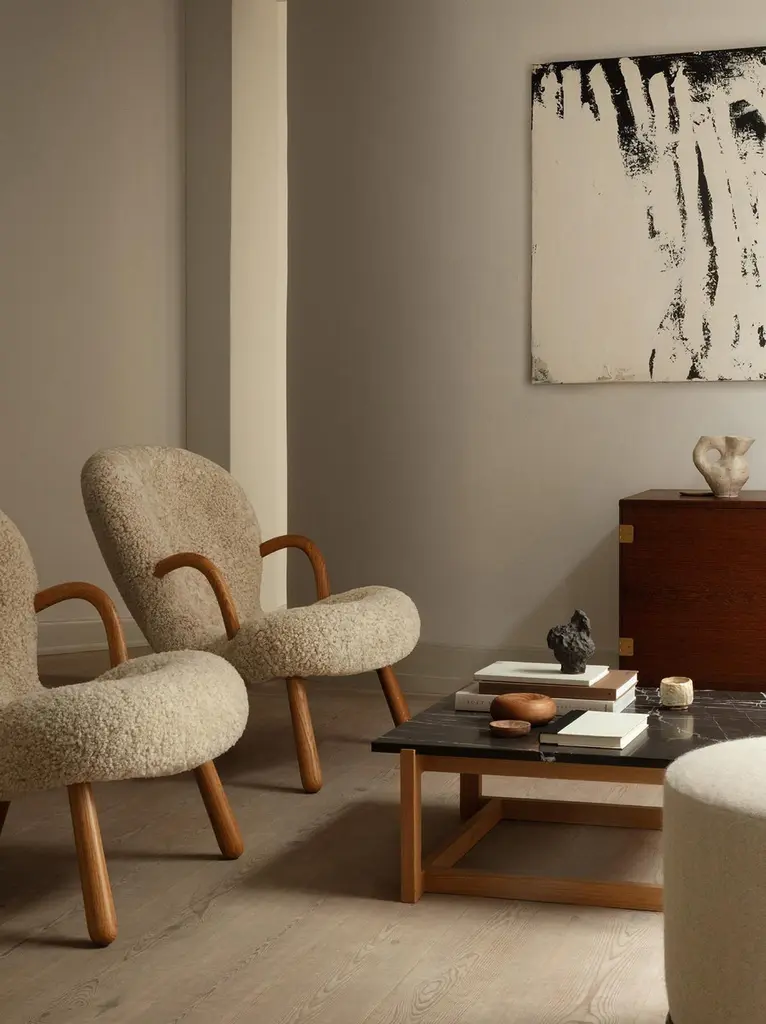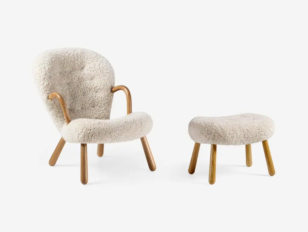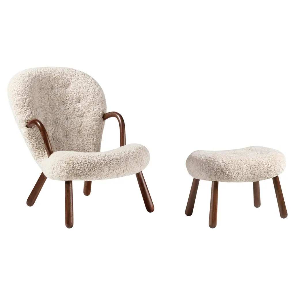 Arnold Madsen Sheepskin Clam Chair & Stool