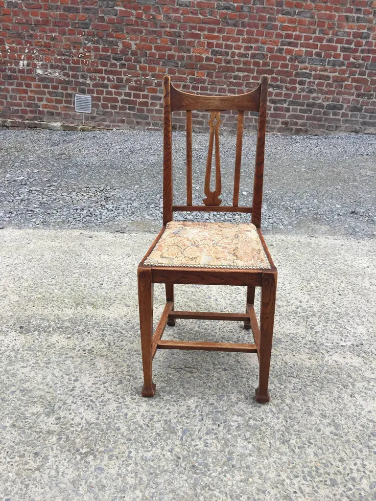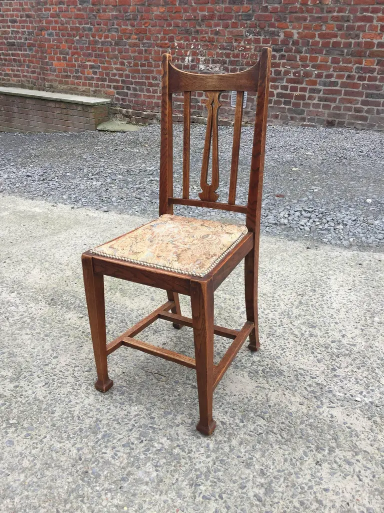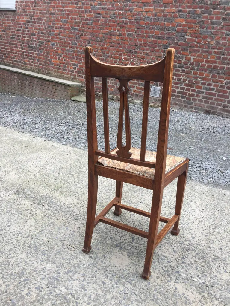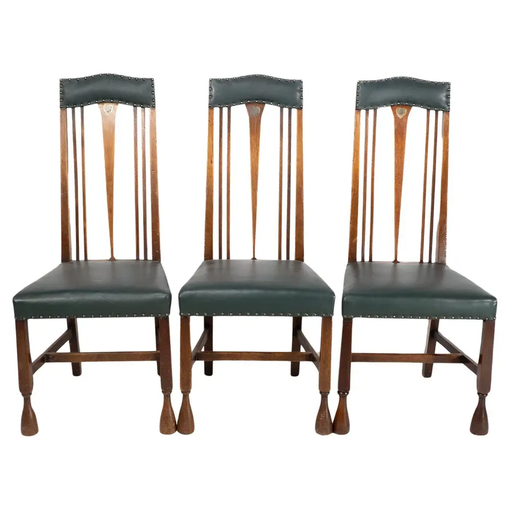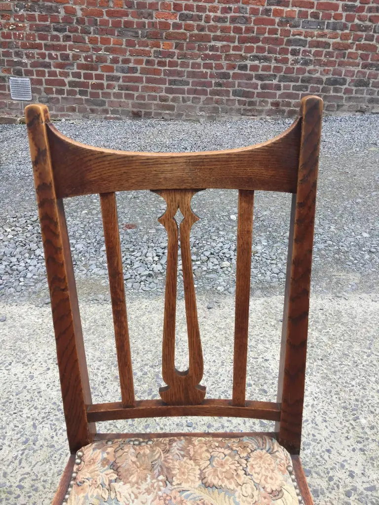 Art Nouveau period, three chairs in oak, Belgium, circa 1900.