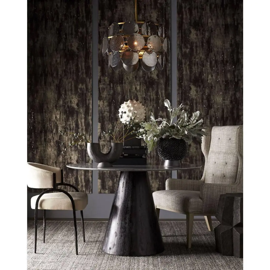 A curved back and large seat rest on a perfectly poised iron frame to compose the foundation of the Bahati. Natural iron has been hand-forged yielding delicate details along its thin frame. The seat and back cushion are covered in a natural linen allowing this piece to easily perform alongside existing decor. For a matte finish on the legs, lightly brush the iron with a scotchbrite pad to take down the sheen.
