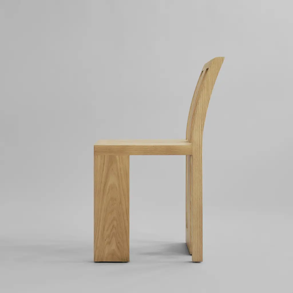 The Atsu Chair brings a bold, sculptural presence to modern interiors. Inspired by traditional Chinese furniture, this distinctive chair is crafted from solid FSC-certified American Red Oak with a focus on clean lines and raw materiality. Handmade with precision, its unique asymmetrical form features a singular front leg and a centered backrest, offering a striking, unconventional silhouette. Designed to be explored from all angles, the Atsu Chair challenges perceptions, functioning as both seating and a conversation piece. The substantial oak planks give it a strong, grounded aesthetic, yet its refined craftsmanship ensures a smooth, seamless look. The name “Atsu,” meaning heavy or strong in Japanese, reflects its robust presence and careful balance of mass and negative space.