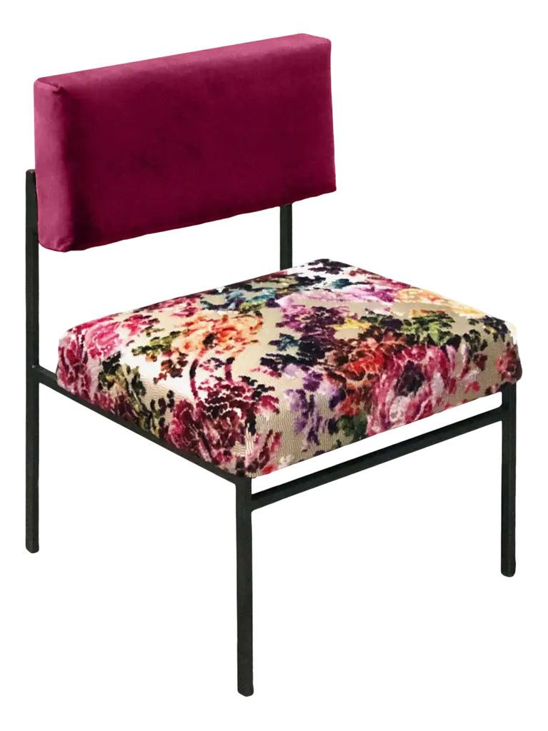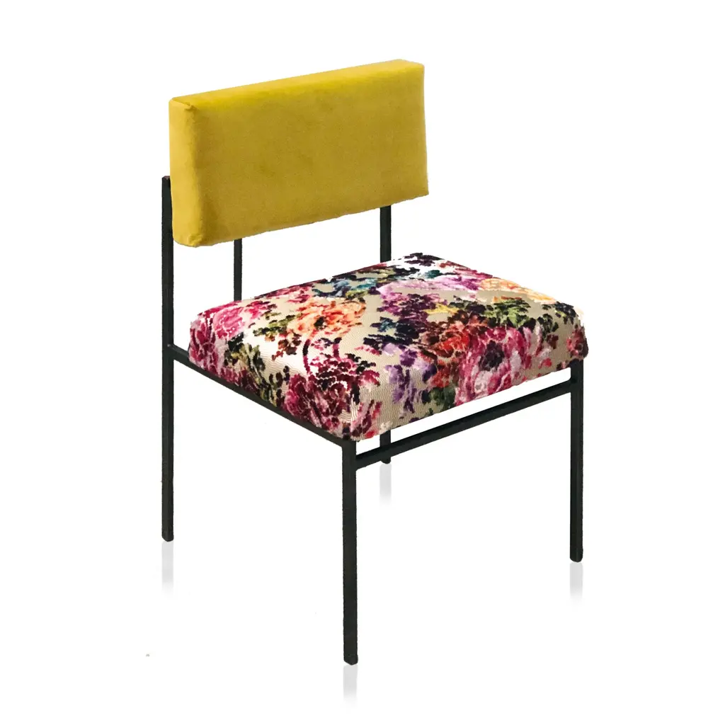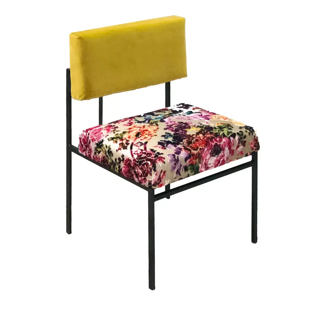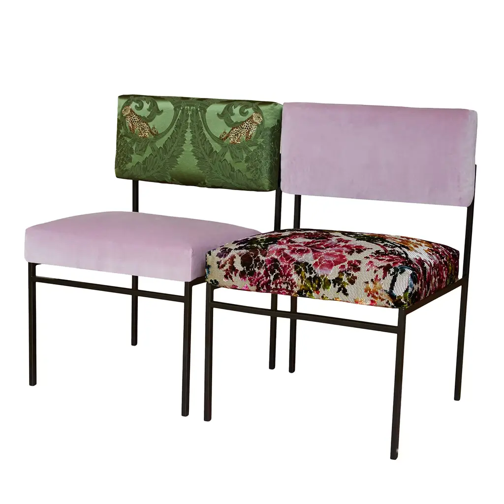 Utmost comfort for stylish dining. flaunting a streamlined and unadorned silhouette, this exclusive chair exemplifies utmost comfort in its 50s-inspired aesthetic. Both the seat and the open backrest are padded with natural latex, goose down, and fresh cotton, wholly covered in a selection of exceptional upholsteries featuring glamorous patterns. This version boasts a jacquard silk backrest with a 100% cotton velvet in pine green colour. A bestseller chair among restaurant owners, this piece is 100% natural and plastic-free. materials all materials used for the construction are 100% natural and biodegradable. internal frame: solid dried beech wood, jute belts with steel springs. padding: 100% natural latex, pressed cotton. finishing: choice of 100% natural fabrics, removable covers with zipper or button systems, steel and cotton zippers, brushed iron frame. production entirely handmade in our workshops in northern italy. Labeled by maker