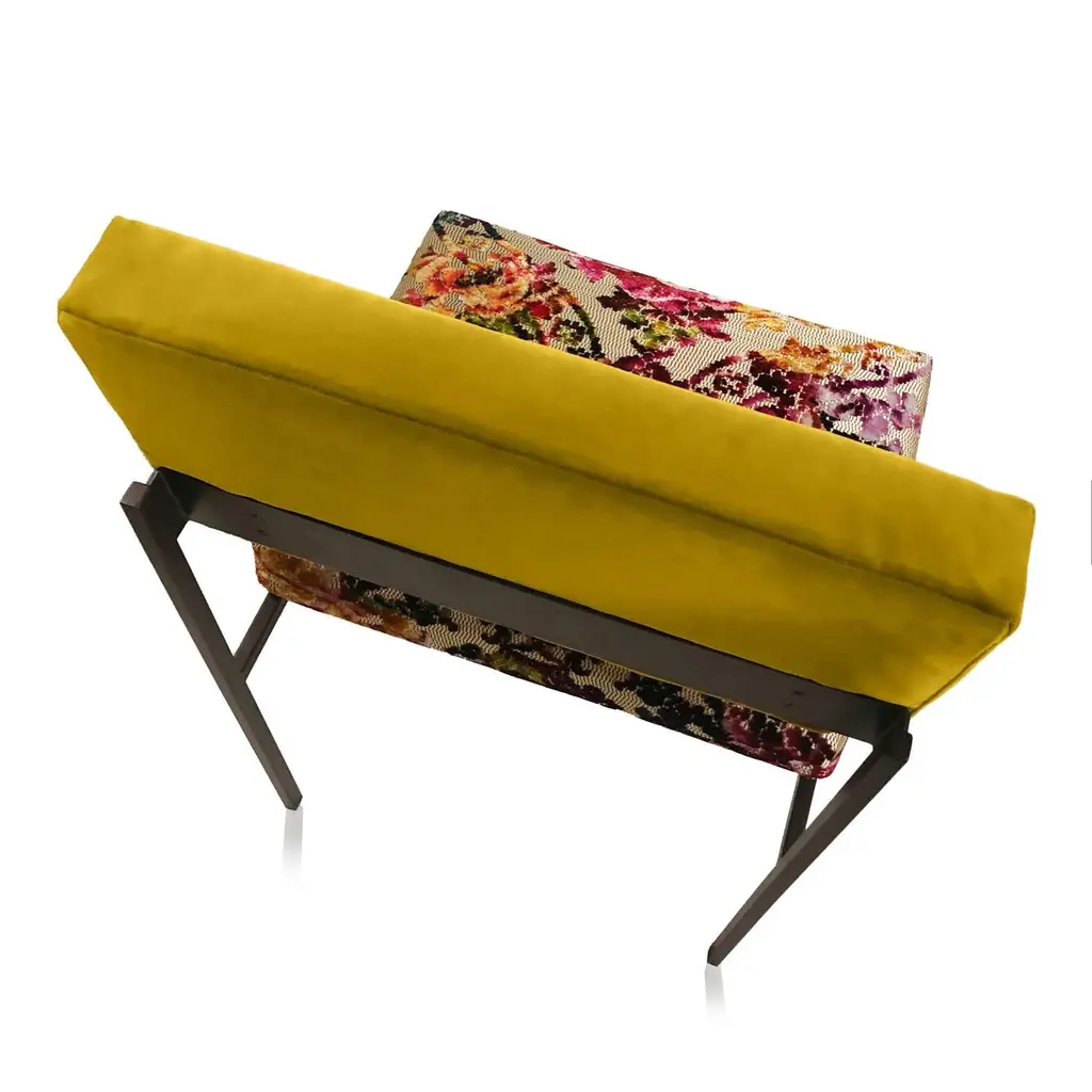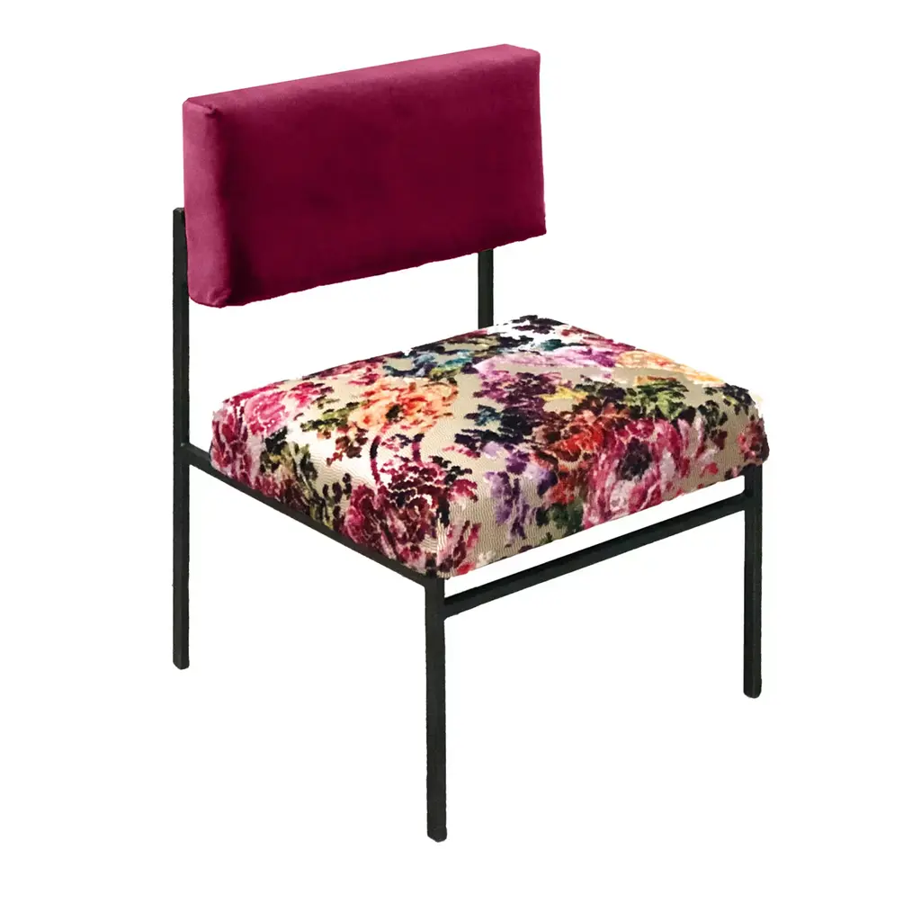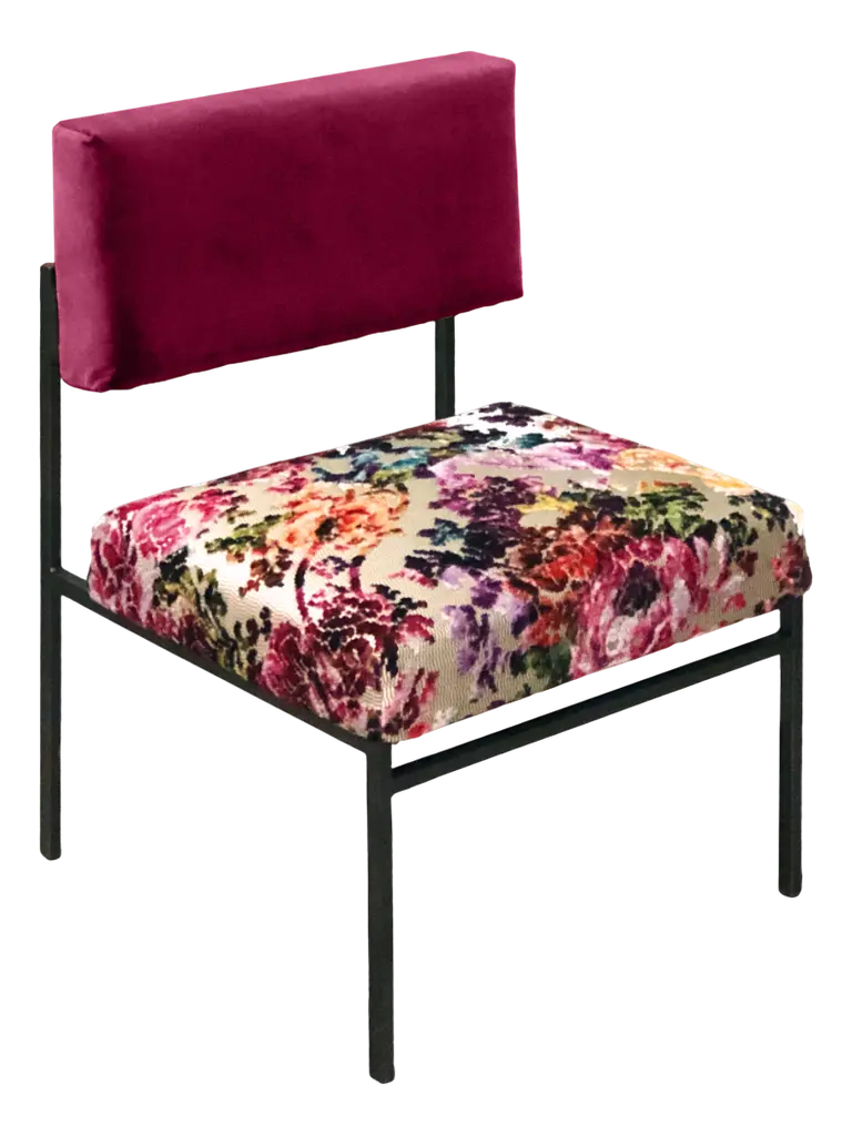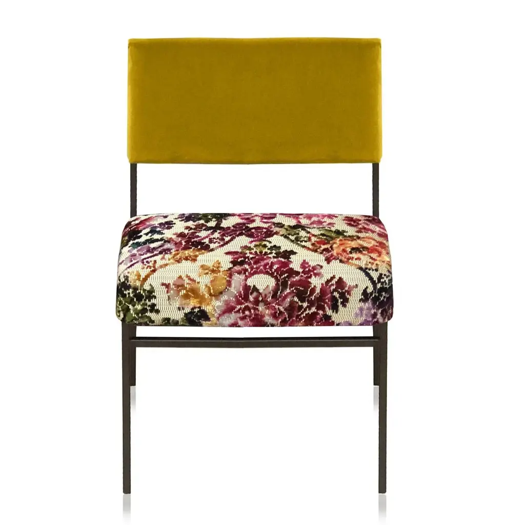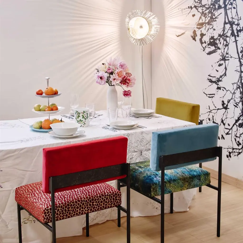 Utmost comfort for stylish dining. flaunting a streamlined and unadorned silhouette, this exclusive chair exemplifies utmost comfort in its 50s-inspired aesthetic. Both the seat and the open backrest are padded with natural latex, goose down, and fresh cotton, wholly covered in a selection of exceptional upholsteries featuring glamorous patterns. This version boasts a jacquard silk backrest with a 100% cotton velvet in pine green colour. A bestseller chair among restaurant owners, this piece is 100% natural and plastic-free. materials all materials used for the construction are 100% natural and biodegradable. internal frame: solid dried beech wood, jute belts with steel springs. padding: 100% natural latex, pressed cotton. finishing: choice of 100% natural fabrics, removable covers with zipper or button systems, steel and cotton zippers, brushed iron frame. production entirely handmade in our workshops in northern italy. Labeled by maker