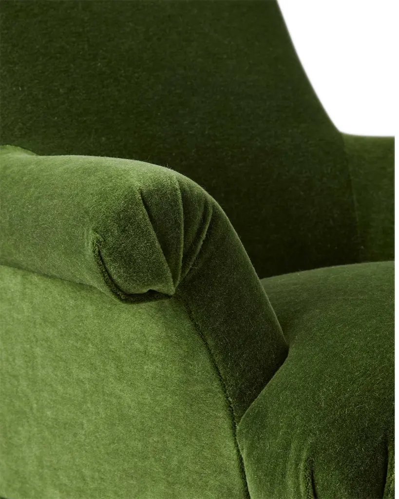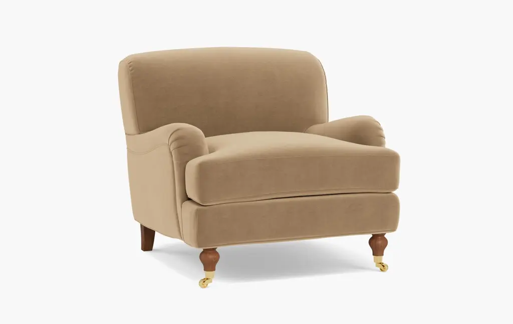 Modern heirloom. A maple frame, stately rolled arms, and turned wood legs. Streamlined in the seat and back, letting the ornate notes take centerstage.
