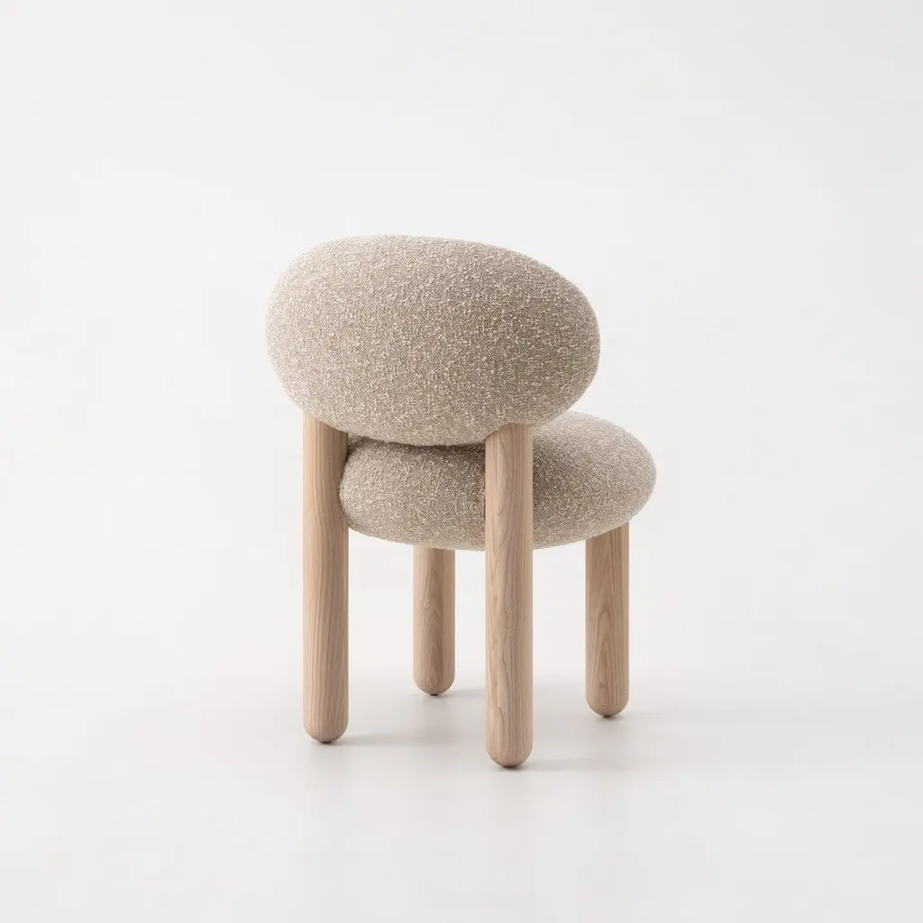 Baloo Boucle Flock Chair CS2 by NOOMDimensions: W 55 x D 61 x H 78 cm Materials: Ashwood, plywood, metal, moulded foam, textile.Weight: 11 kgAlso available in other materials and colors.The Flock Chair is an award-winning piece, recognised as the NYCxDESIGN Awards winner in the Contract Seating category. This accent chair combines striking design and comfort with meticulous craftsmanship, making it an ideal choice for transforming any interior into a personalised, character-rich space. The Flock Chair, characterised by its smooth, wide backrest and spacious, comfortable seat, results from extensive research, numerous prototypes, and meticulous craftsmanship under the designer's close supervision. The Flock Chair is customisable; it is available in a wide range of colours and fabrics, with options for upholstered or wooden legs. The legs can come in natural hues or painted in RAL colors, allowing for a truly bespoke touch. It is ideal for residential, restaurant, and hotel interiors.About, NOOM is a leading design brand from Ukraine. Working at the intersection of art and craftsmanship, driven by a curiosity for testing new materials, finishes, and techniques, NOOM produces eye-catching furniture, lighting, mirrors and décor for private and commercial interiors, including cutting-edge collectable design pieces. Balancing between expression and function, NOOM is a place where design meets art. The company was founded in 2017 by industrial designer Kateryna Sokolova, with designer, and entrepreneur Arkadii Vartanov. Arkadii and Kateryna teamed up to bring together the very best of design, materials, and craftsmanship. Combining traditional and modern manufacturing technologies, NOOM aims to design functional and striking products that are "built to last". "Our objects lie between design, art, and craftsmanship," said the designers. "Managing the manufacturing of our creations, we oversee the entire production process and pay exceptional attention to every detail in each piece”.