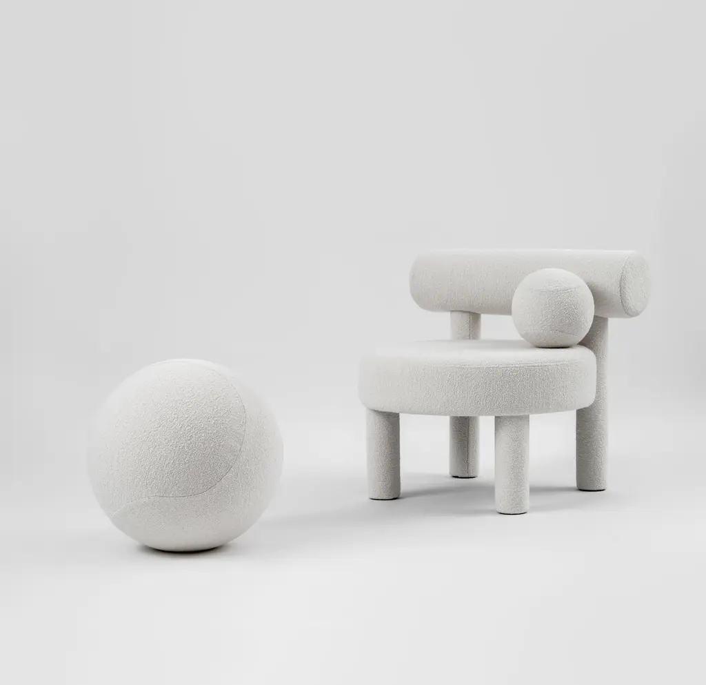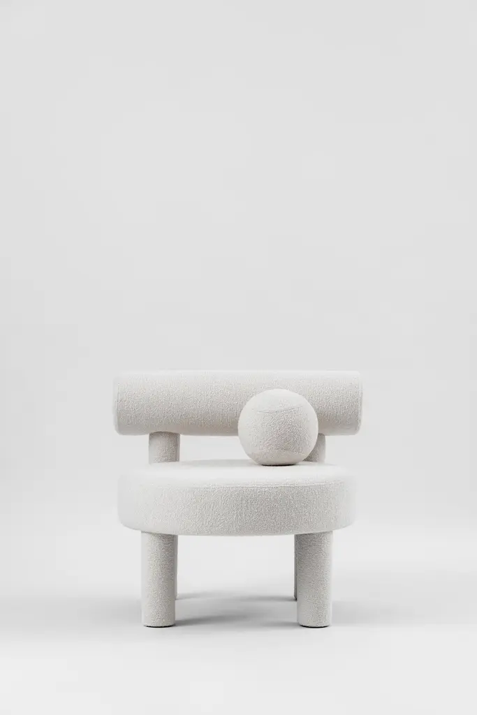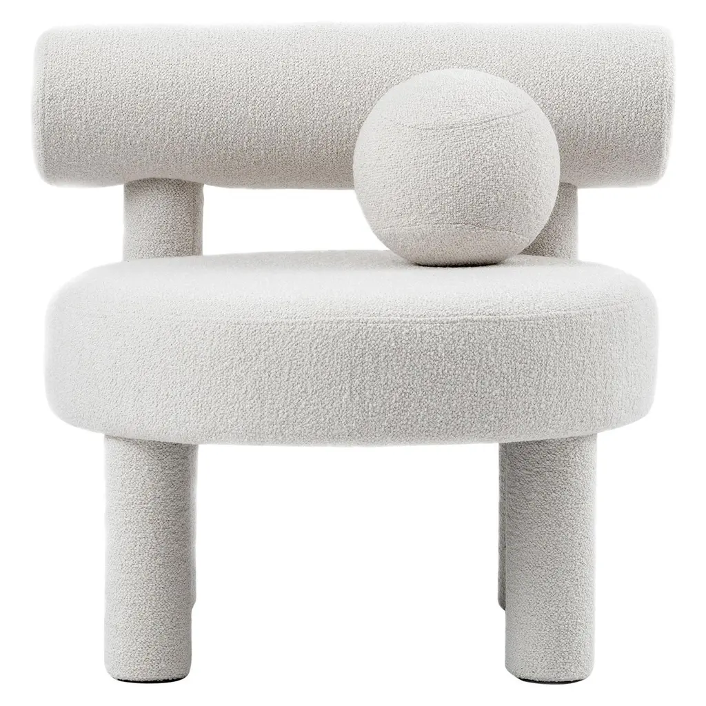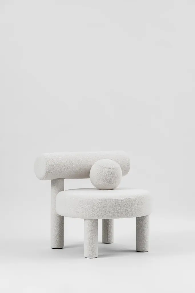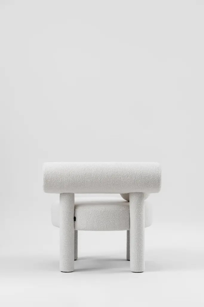 Baloo Boucle Gropius CS1 Low Chair by NOOMDimensions: W 75 x D 75 x H 71 cm Materials: Wood, plywood, foam, moulded foam, textile.Weight: 19.2 kgAlso available in other materials and colors.New NOOM furniture collection is dedicated to the 100th anniversary of the founding of the Bauhaus School in Germany. Ideas of functionalism and conciseness, the combination of craft and art, buildings and objects formed by a composition of simple geometric shapes, are still relevant. NOOM furniture is a tribute to the great thinkers who formed the modernist principles and brought them to life. The designer has “gathered” the shape of this chair from balls and cylinders. A round pillow and an ottoman appeal to interact: to pump, to play, to bubble.About, NOOM is a leading design brand from Ukraine. Working at the intersection of art and craftsmanship, driven by a curiosity for testing new materials, finishes, and techniques, NOOM produces eye-catching furniture, lighting, mirrors and décor for private and commercial interiors, including cutting-edge collectable design pieces. Balancing between expression and function, NOOM is a place where design meets art. The company was founded in 2017 by industrial designer Kateryna Sokolova, with designer, and entrepreneur Arkadii Vartanov. Arkadii and Kateryna teamed up to bring together the very best of design, materials, and craftsmanship. Combining traditional and modern manufacturing technologies, NOOM aims to design functional and striking products that are "built to last". "Our objects lie between design, art, and craftsmanship," said the designers. "Managing the manufacturing of our creations, we oversee the entire production process and pay exceptional attention to every detail in each piece”.