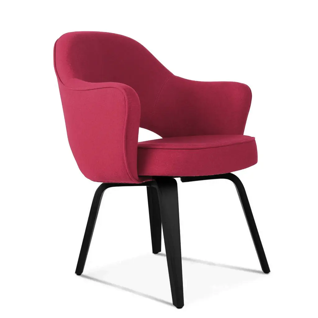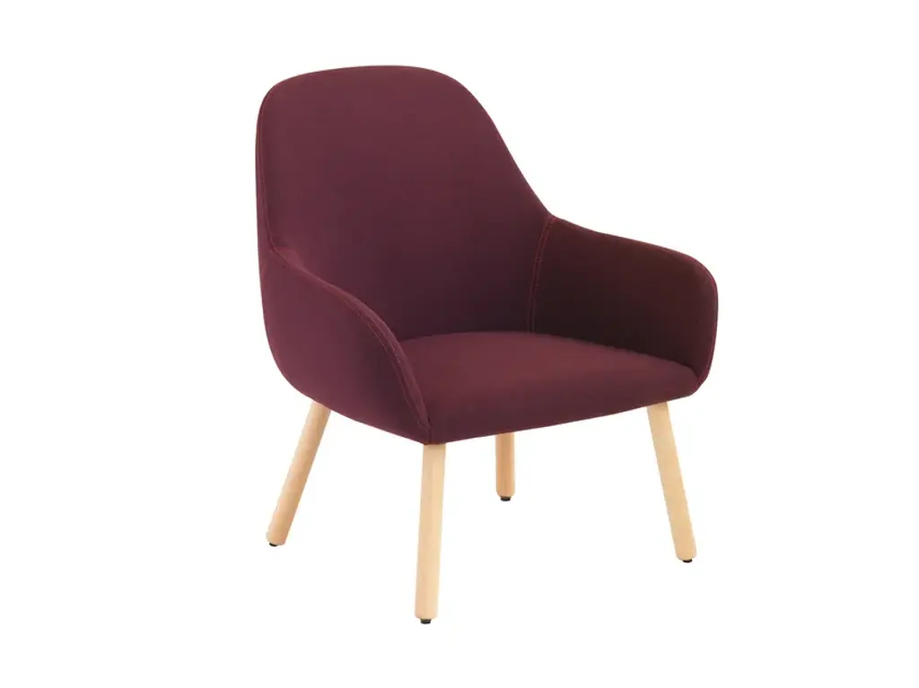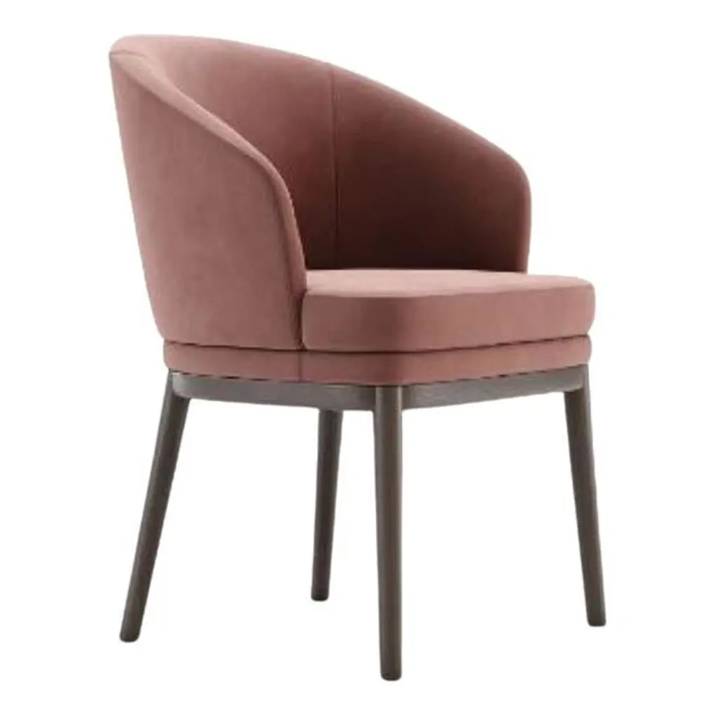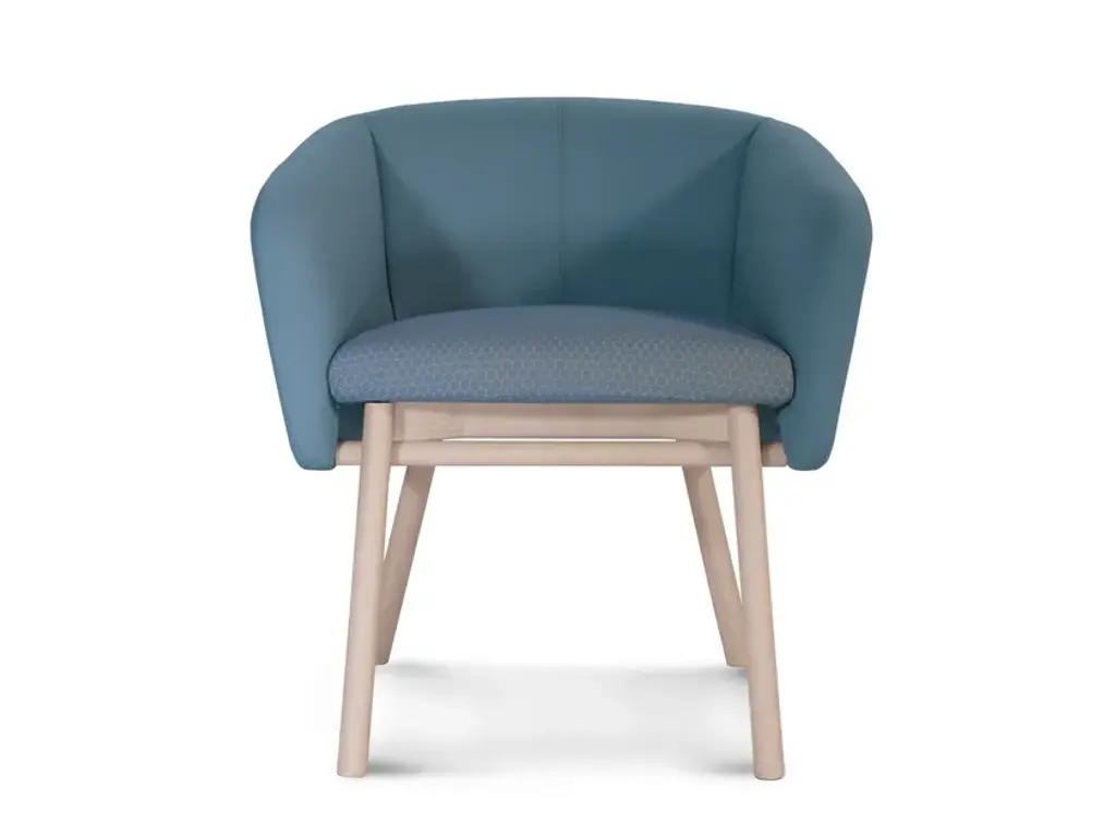 Upholstered fabric or leather chair with armrests and wooden (beech) or painted metal base from the BALÙ collection, designed by Emilio Nanni.