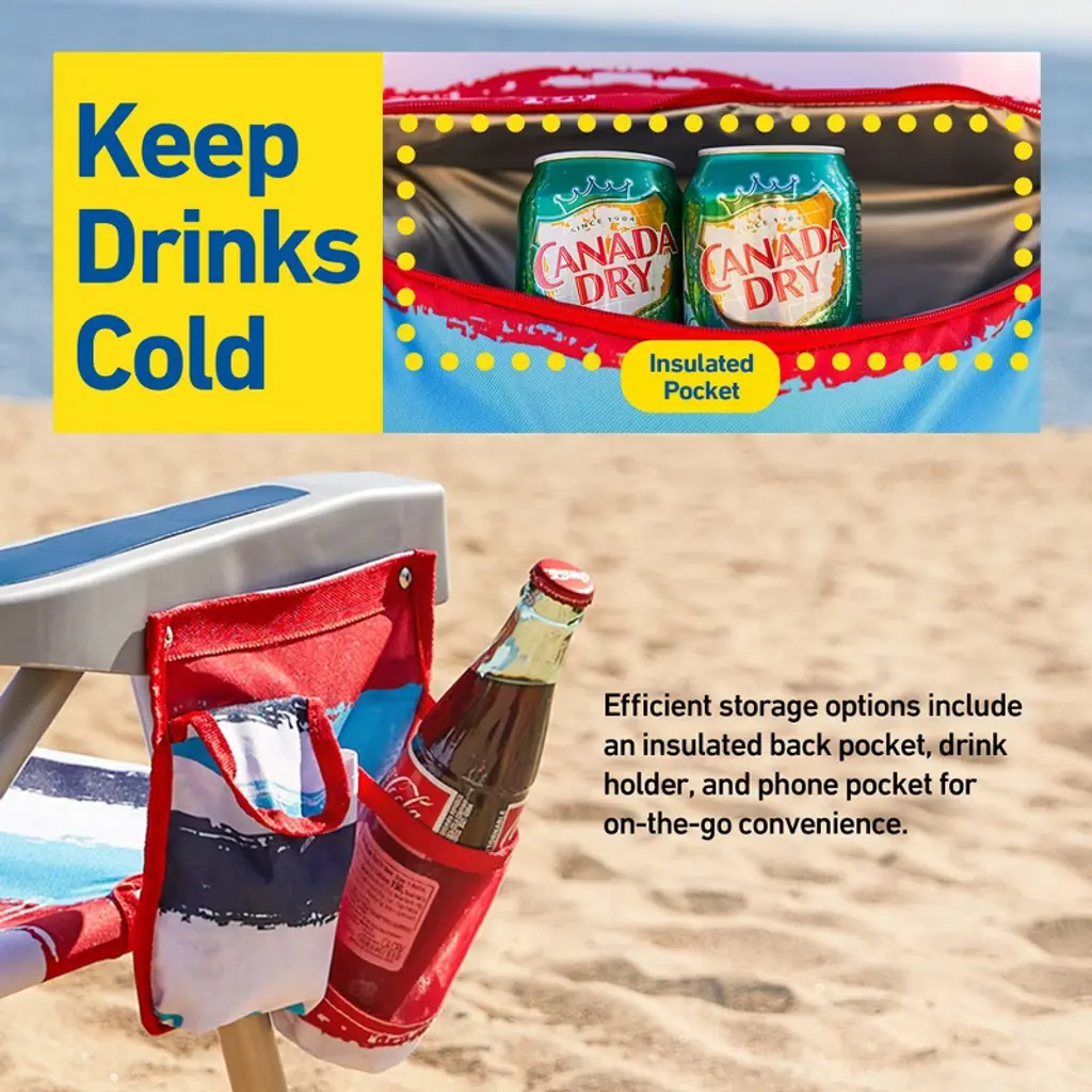 Experience the perfect blend of convenience, comfort, and functionality with the Banana Boat 2-Pack 5-Position foldable beach chair for adults. Designed for beachgoers who appreciate both style and practicality, this folding chair comes packed with features to ensure a comfortable and enjoyable time by the water. Crafted with a durable yet lightweight frame, this beach chair is easy to carry and transport, ensuring you can take it anywhere with ease. The low stance seat design allows you to stretch out and relax close to the sand, perfect for sunbathing or dipping your toes in the water. The chair effortlessly folds into a compact and portable size, making it a breeze to carry and store when not in use. Equipped with adjustable shoulder straps, you can comfortably carry the chair over your shoulder, leaving your hands free to carry other beach essentials. Built to accommodate up to 300 lbs, this chair provides sturdy and reliable support for beachgoers of all sizes. Keep your snacks and drinks cool and refreshing with the insulated back pocket, perfect for a day under the sun. The expandable drink holder ensures your favorite beverage is always within reach, adapting to fit different bottle and cup sizes. Stay organized with the convenient storage pocket designed to hold your phone, keys, and other small essentials securely. The ergonomic design includes a supportive backrest, front head rest, and armrests, allowing you to sit back and relax while enjoying the view. The built-in towel bar keeps your towel off the sand and within easy reach, adding to the chair’s practicality and convenience. Easy to set up and take down, our folding chairs for the beach are perfect for those who love to soak up the sun in comfort and style. Make every outdoor adventure more enjoyable with this must-have beach chair!