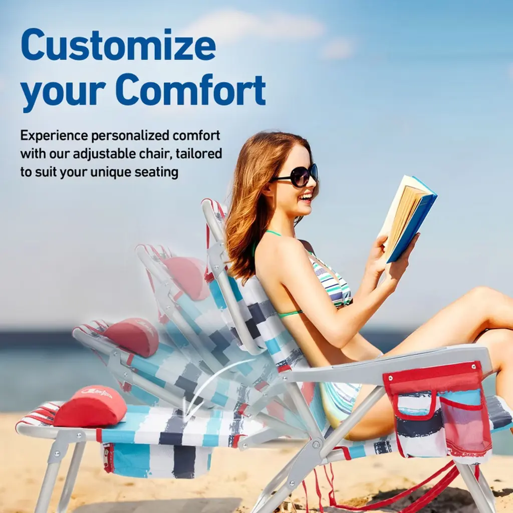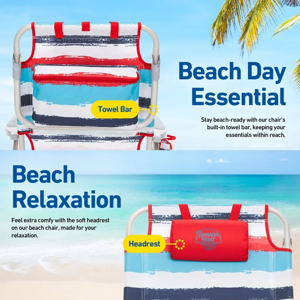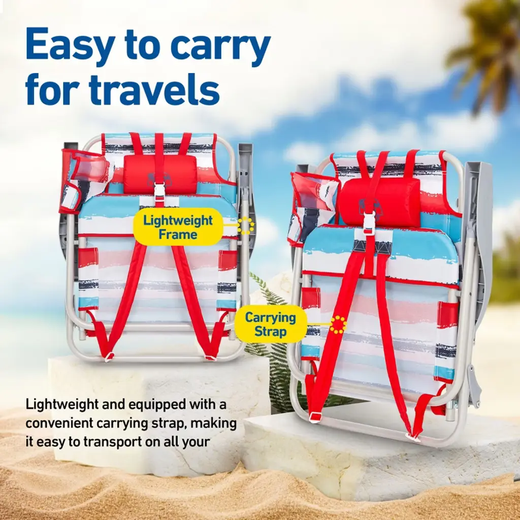 Banana Boat 2-pack Folding Beach Chair Lightweight Backpack Chairs For Adults 5-position With Lay Flat Outdoor Heavy Duty Beach Chair, Red