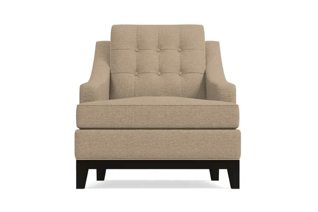 Remember how you used to slide down the bannisters as a kid? Well, this rad, vintage-y sofa gives you a great grown up reason to be a kid again- those swooped arms will provide hours of fun. With stylish button accents and a rich espresso base, it looks pretty fly too.