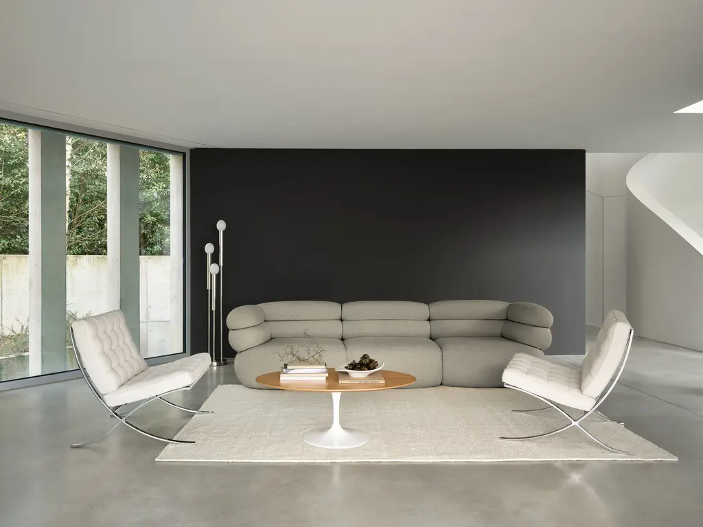 One of the most recognized objects of the last century, and an icon of the modern movement, the Barcelona Chair exudes a simple elegance that epitomizes Ludwig Mies van der Rohe's most famous maxim, “less is more.”Created by Ludwig Mies van der Rohe for his 1929 German Pavilion at the International Exhibition in Barcelona, the Barcelona Collection’s pure composition came to epitomize modern architecture. From the elegant crisscross frame to the individual upholstery squares expertly welted together by hand, each Barcelona Chair is a tribute to the marriage of modern design, exceptional craftsmanship, and meticulous attention to detail.