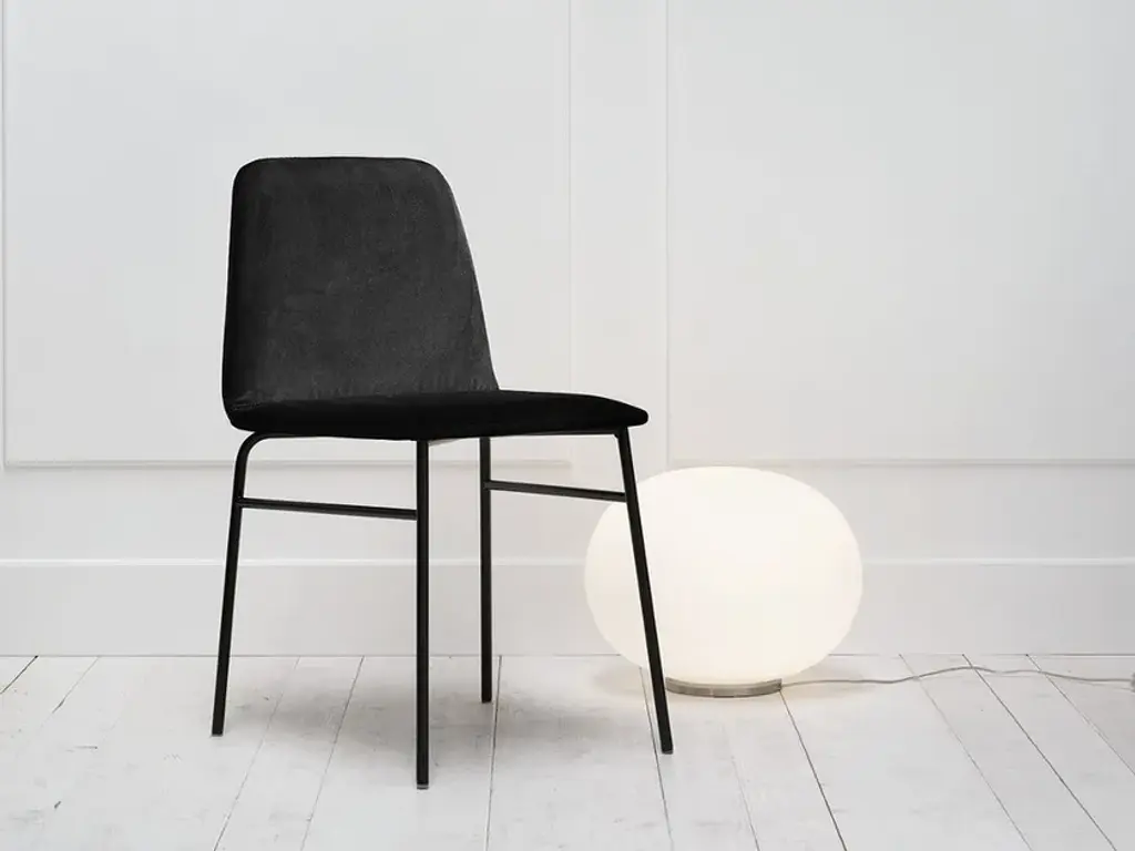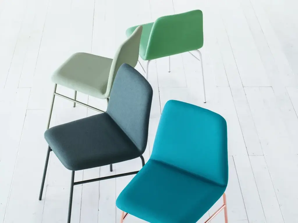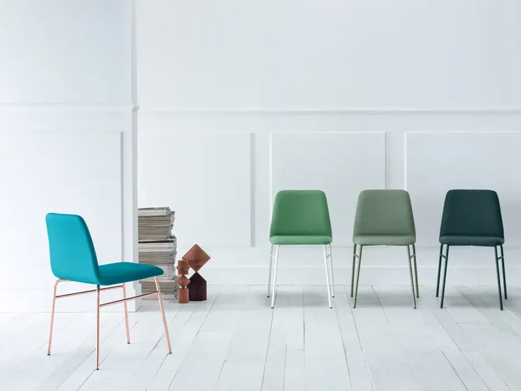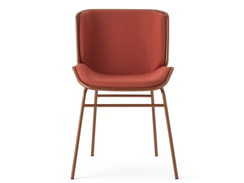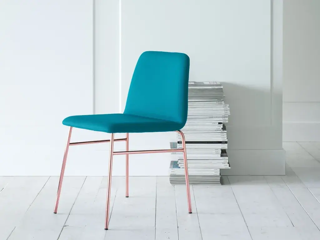 Chair with metal base (shiny copper) and padded seat from the BARDOT collection, designed by Emilio Nanni.