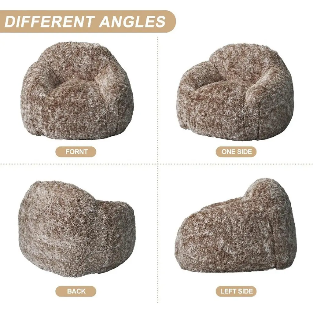 Bean Bag Chair, Faux Fur Bean Bag Chairs For Adults, Kids Bean Bag Couch With Armrest, Soft Foam Filled Fluffy Couch Lazy Sofa Chair
