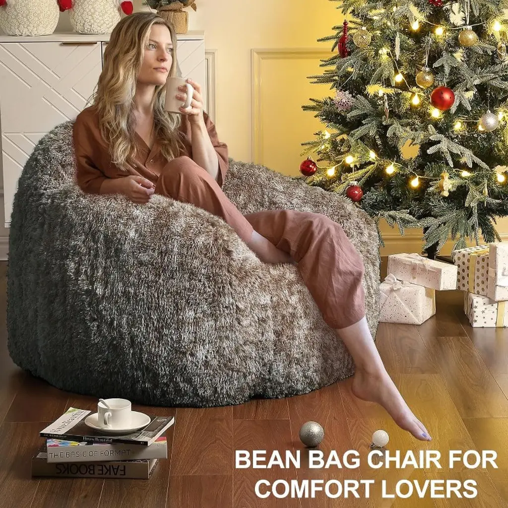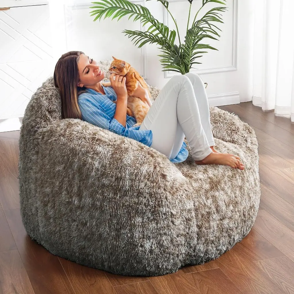 Made of two-tone PV plush material, this bean bag chair is silky to touch. Our superior quality faux fur bean bag couch is luxuriously cozy and this comfy beanbag chair is made to look and feel like the real deal for a fun and relaxing lounge. Fashionable and luxurious, this bean bag adds softening and sensuous texture to your home decor.