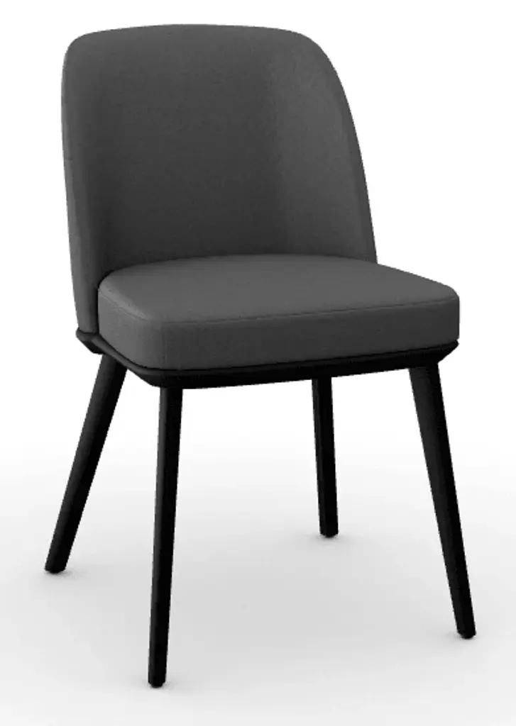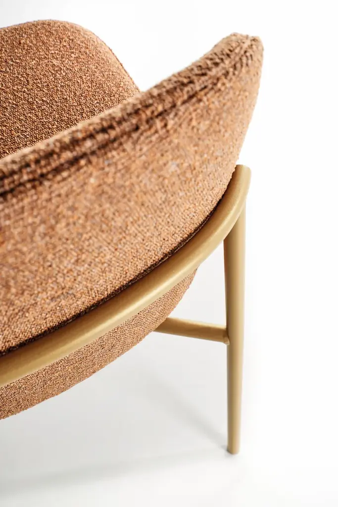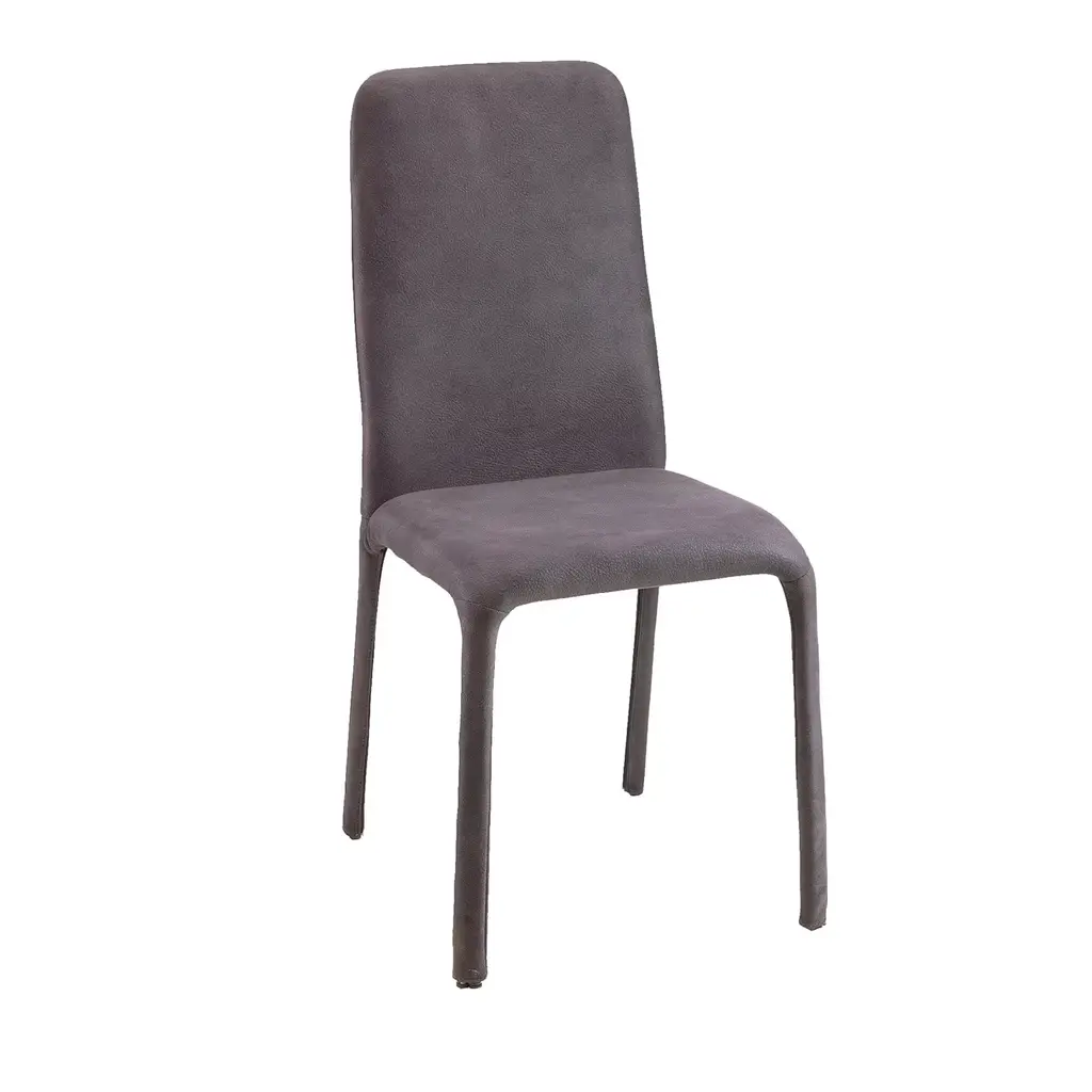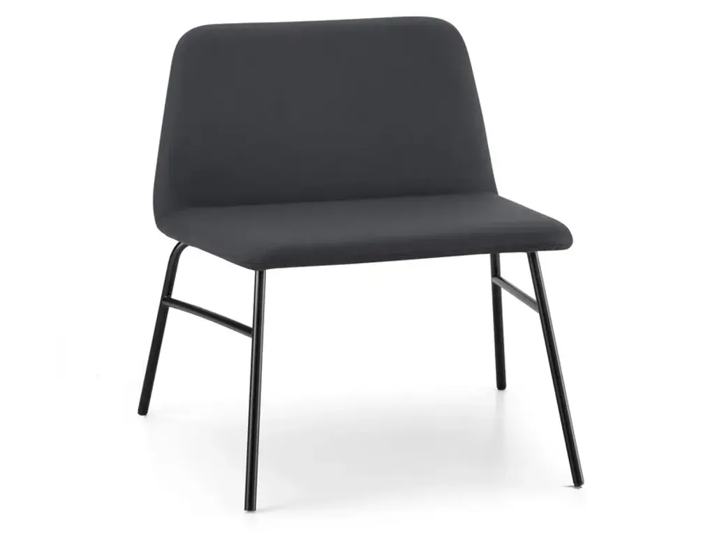 Chair and armchair made of steel tube epoxyd powdercoated. Shaped backrest in plywood, seat upholstered on elastic webbing. The upholstery is made with non-deformable polyurethane foam with different densities. The covering is offered in imitation leather or fabric.