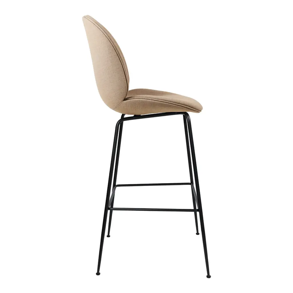 The Beetle Bar Chair has since its introduction in 2013 being well received by end-consumers as well as interior architects. Due to its appealing design, outstanding comfort and unique customisation possibilities, the bar chair can be seen in many of the most renown restaurants around the world. The fully upholstered bar chair carries strong references to the design duo GamFratesi's inspirational source; the insect world, more specific the world of beetles. Not just the name indicates their inspiration, but also the characteristic elements of the beetles†sections have been interpreted - shape, shells, sutures, rigid outside and soft inside. The height of the bar chair contributes to its light expression, which makes it blend into any interior naturally and with grace. The wide range of upholstery options and different bases make it possible to put your personal touch to the bar chair and create one of its kind.