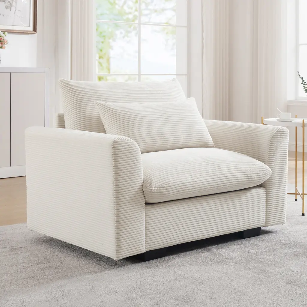 Beige Corduroy Deep Seat Single Sofa Accent Chair,1 Seat Sophisticated Fabric Single Sofa - Beige